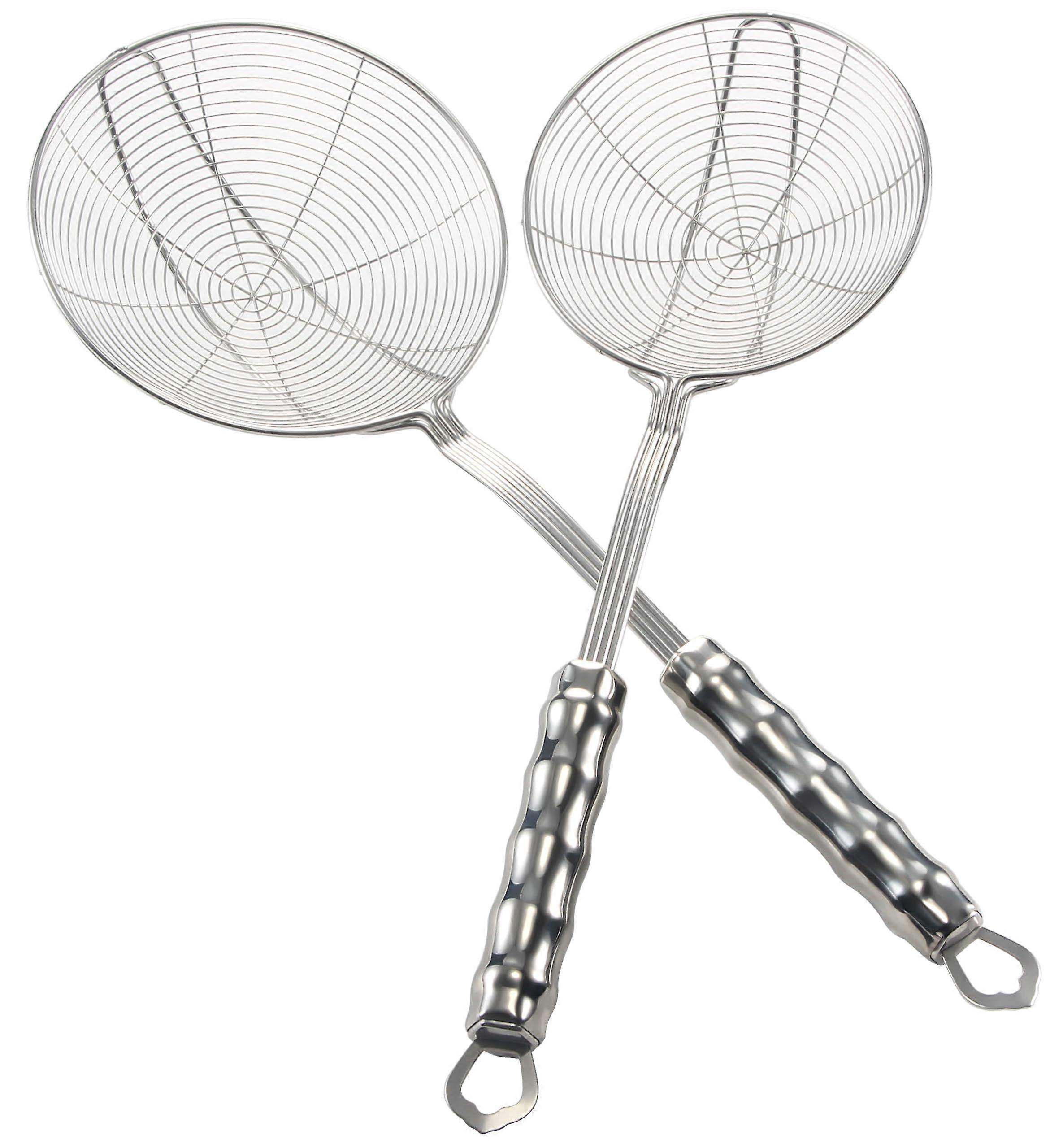 2 Pack Stainless Steel Spider Strainer Skimmer Spoon with Ergonomic Long Handle for Frying Pasta Dumplings
