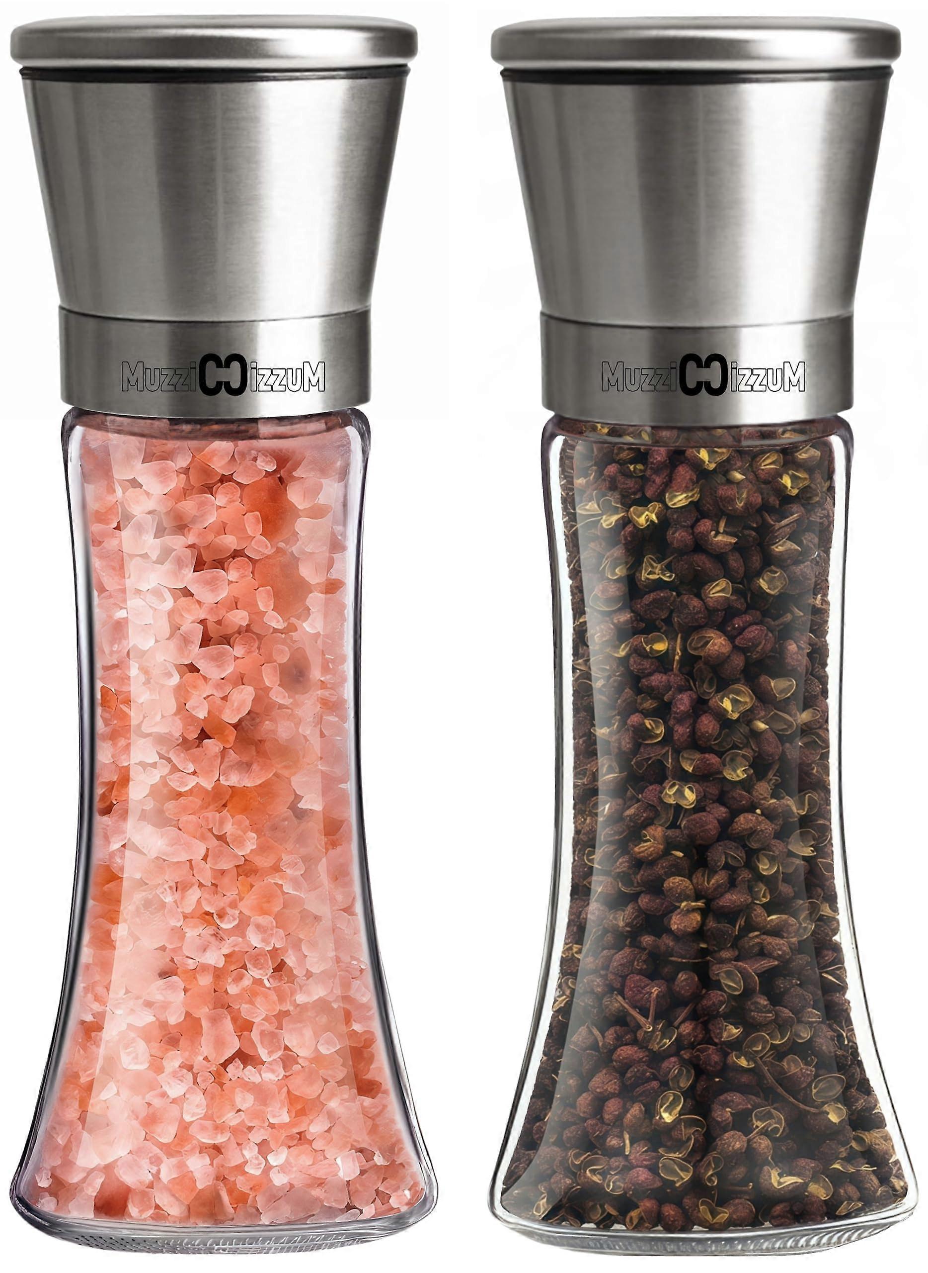 Salt and Pepper Grinder Set Adjustable Ceramic Mills Stainless Steel and Glass 200ml 2pcs Silver