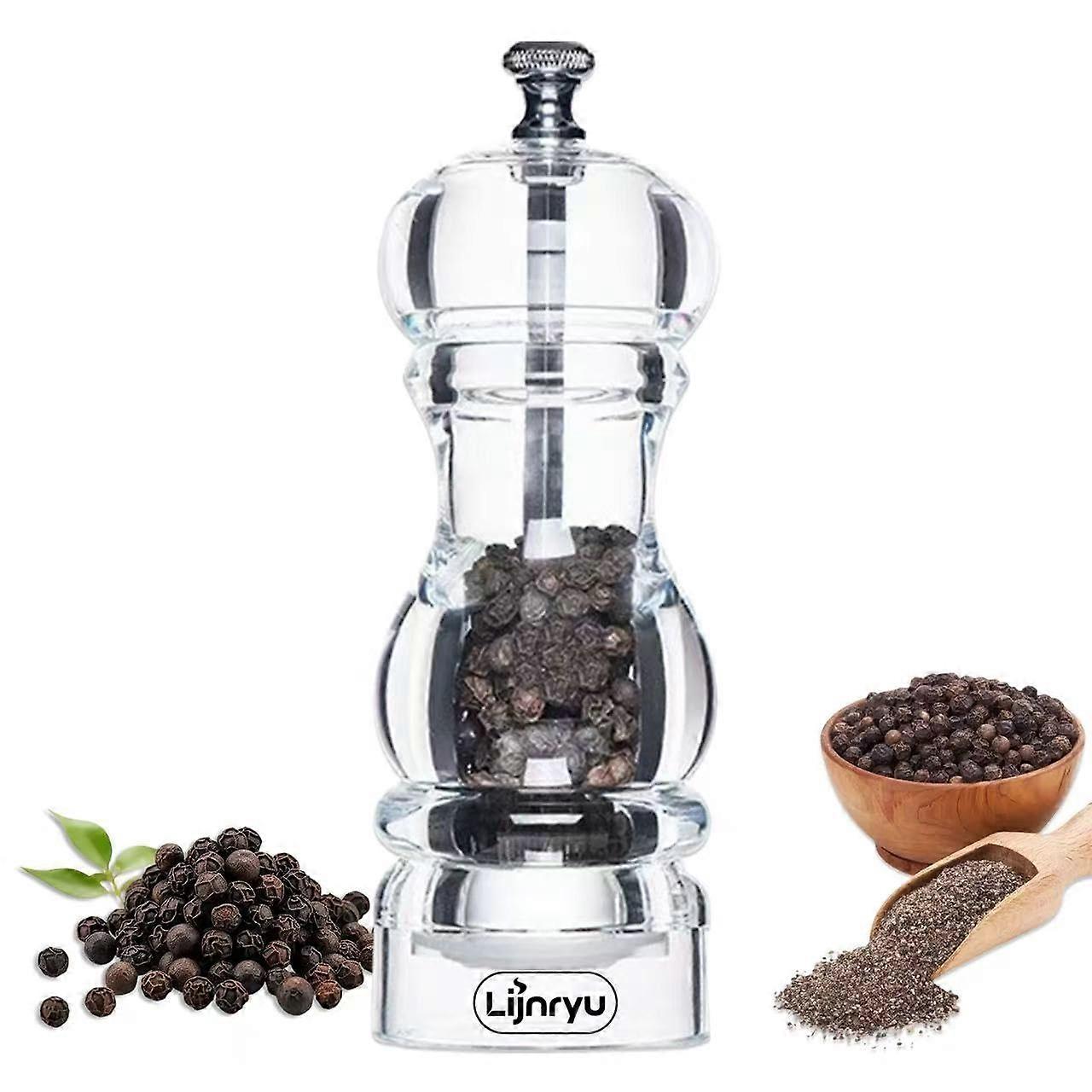 Pepper Grinder 6.2 Inch Clear Acrylic Body with Adjustable Ceramic Mechanism, Refillable Spice Mill for Kitchen and BBQ