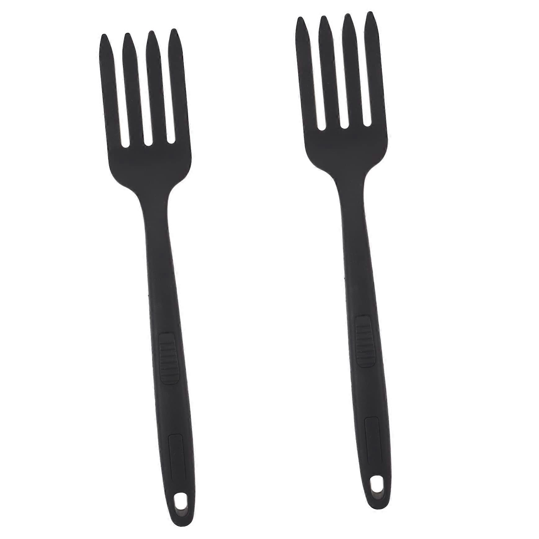2Pcs Black Silicone Pasta Fork Set Heat Resistant Nonstick Cooking Forks for Mixing and Serving
