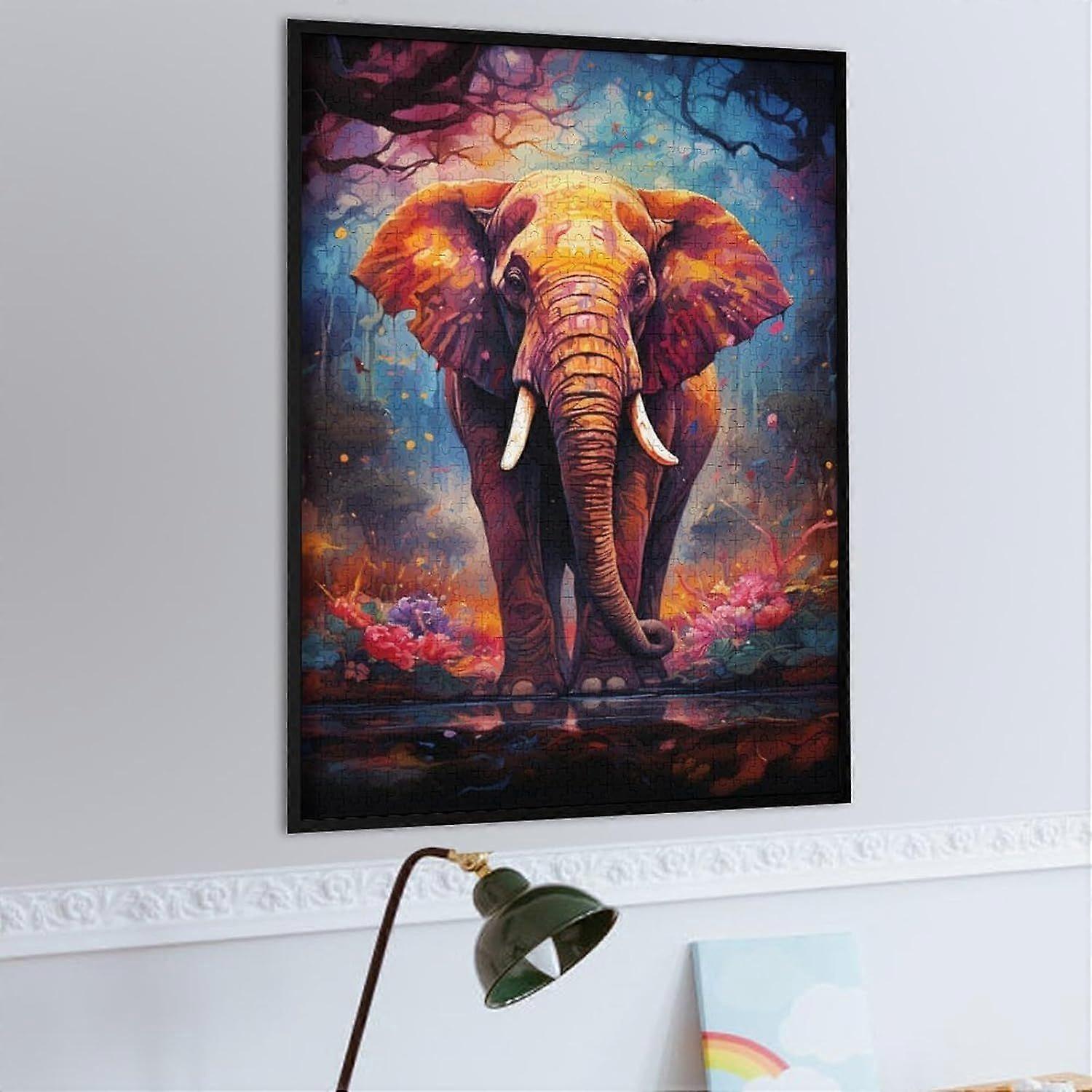 Jigsaw Painting Colorful Art Elephant Wooden Puzzle s Challenging DIY Brain Teaser Perfect Family Game Or Decorative GiftFrame not includedJP-7176