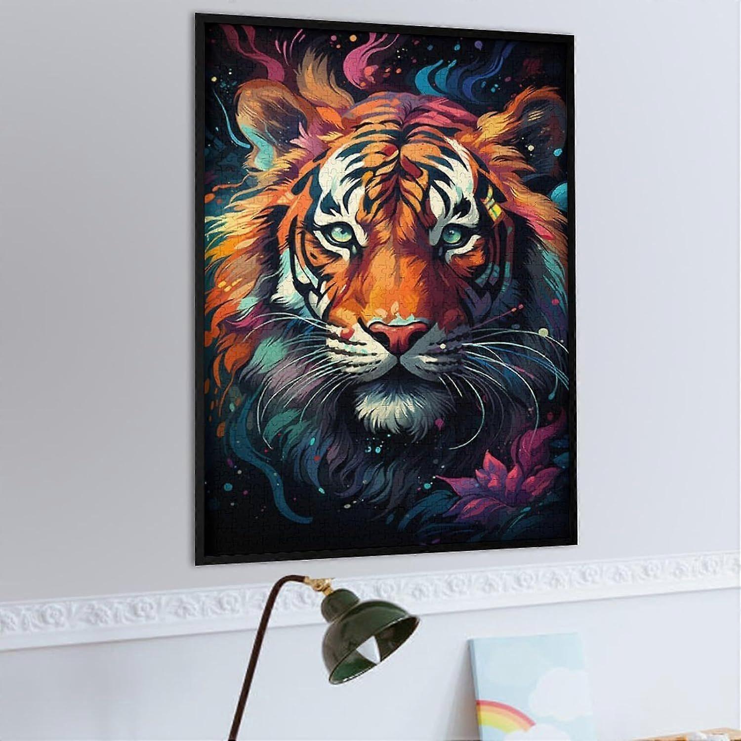 Fantasy Colorful Tiger Puzzle Jigsaw Wooden Jigsaw Puzzle s Interactive Family Game DIY Home Decor Brain Teaser GiftFrame not includedJP-7148