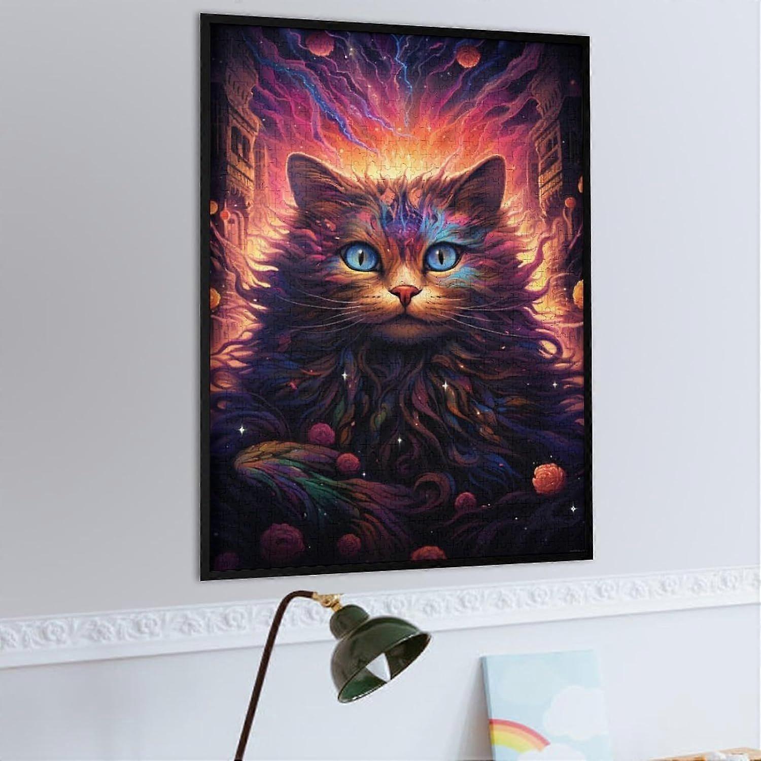 Jigsaw Puzzle s Future Colorful Psychedelic Cat Wooden Puzzle s Perfect for Birthday ChristmasFrame not includedJP-7459
