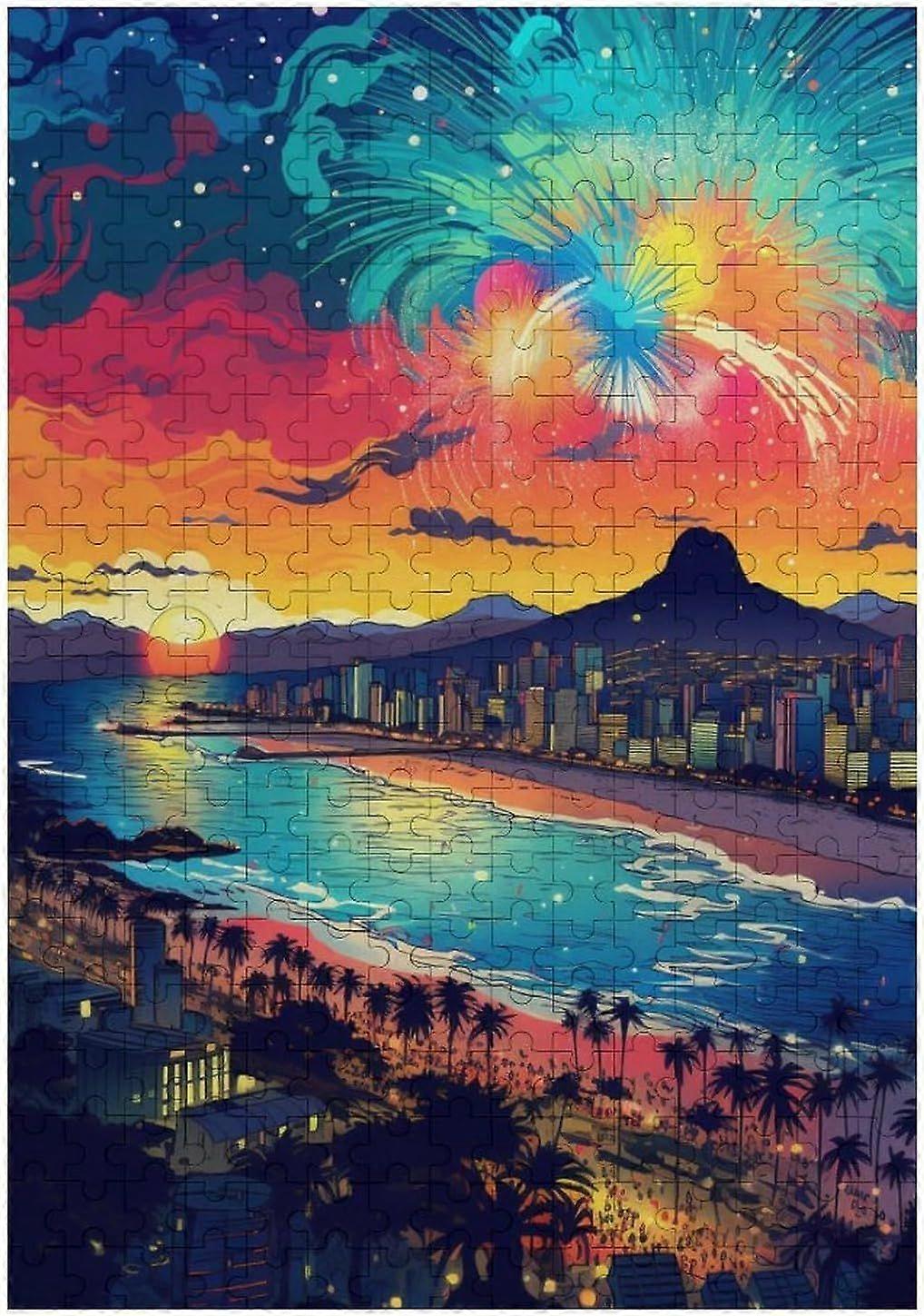 Adults Jigsaw Puzzle Colorful Psychedelic Scenery at Copacabana Beach Family Fun PuzzleFrame not includedJP-7926
