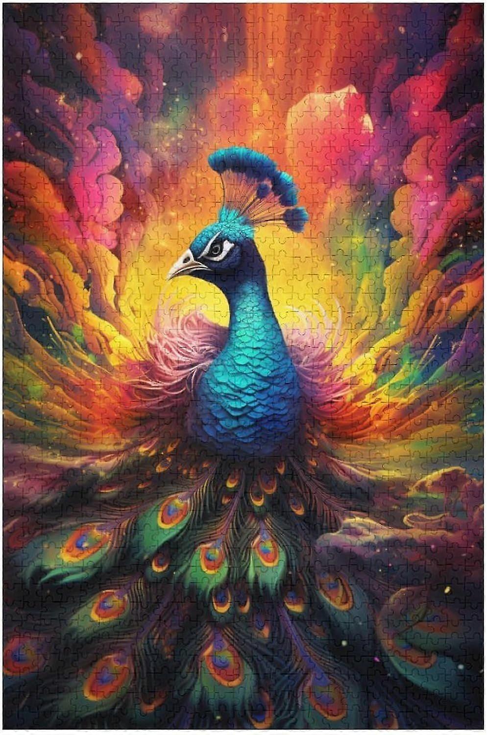 Jigsaw Puzzle Colorful Psychedelic Peacock Puzzle GamePerfect Decoration for Teens Age 14 Years UpFrame not includedJP-7903