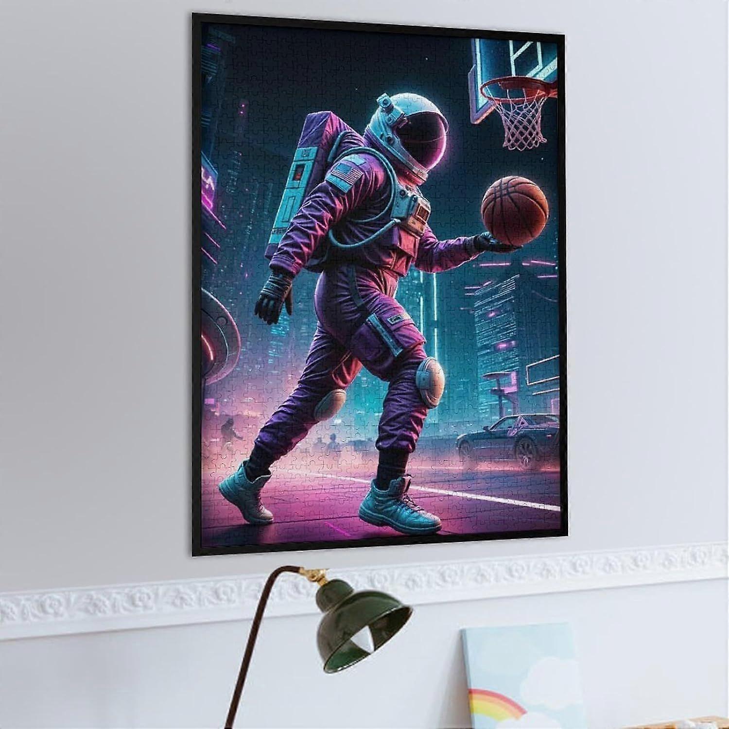 Astronaut Playing Basket Jigsaw Puzzle Wooden Jigsaw Puzzle s DIY Home Decor Gift Adult Brain TeaserFrame not includedJP-7661