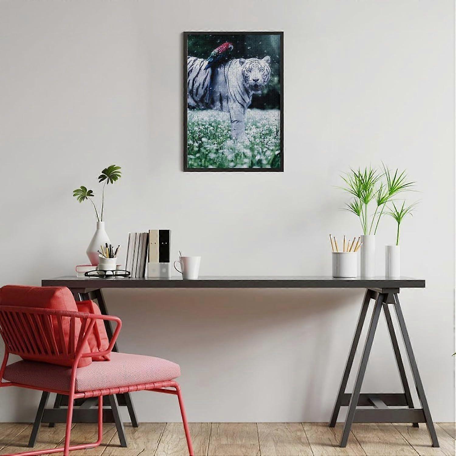 White Tiger And Parrot Jigsaw Puzzle s Impossible Jigsaw Puzzle s Ideal DIY Decor & Brain Teaser GiftFrame not includedJP-7613