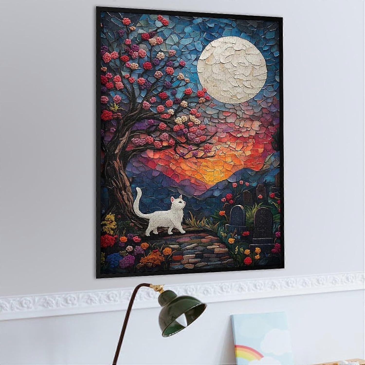 Jigsaw Puzzle White Moonlight Cat Wooden Jigsaw Puzzle s Family Activity DIY Home DecorFrame not includedJP-7594