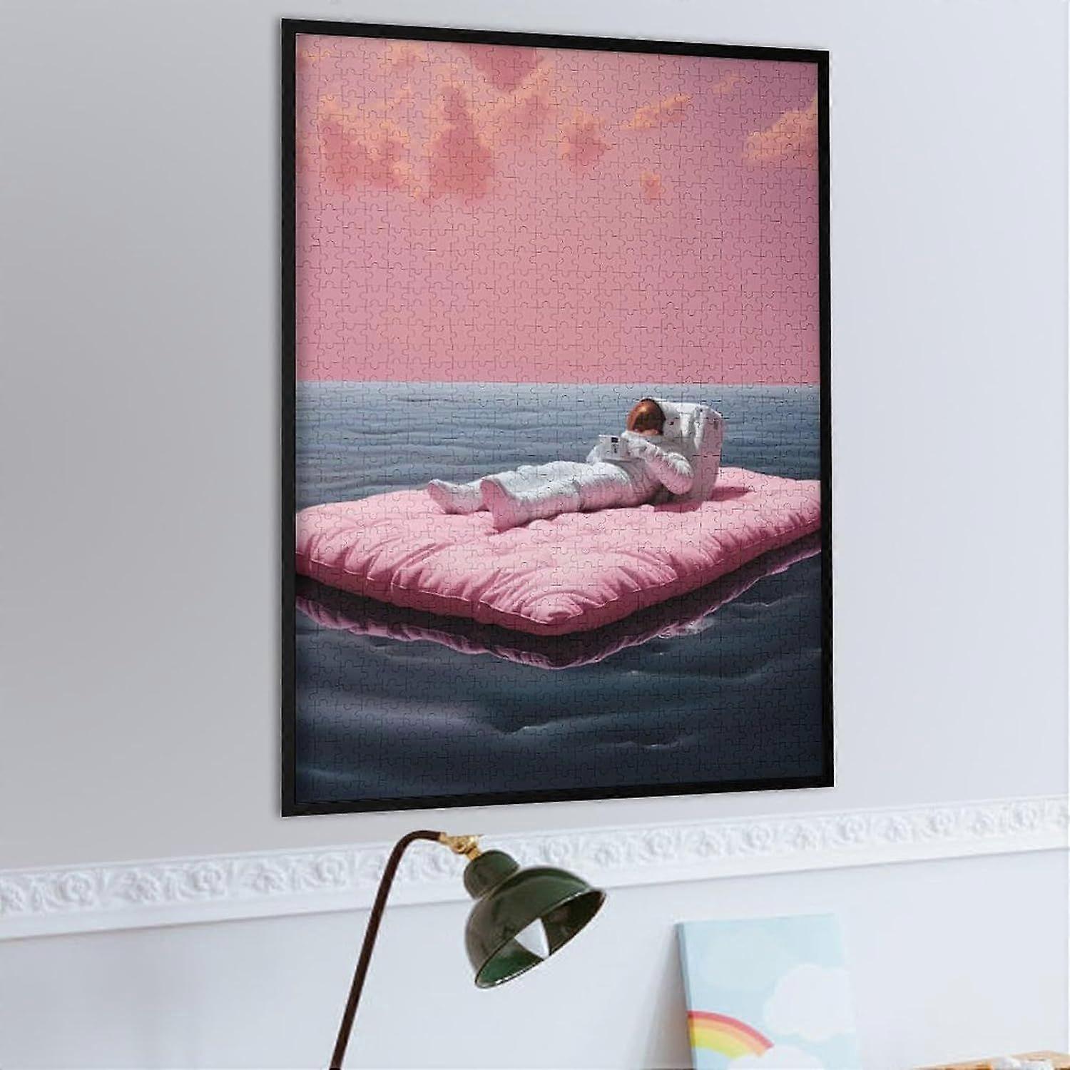 Jigsaw Puzzle Astronaut Pink Mattress Wooden Jigsaw Puzzle s Perfect DIY Art Decor Or Birthday GiftFrame not includedJP-7672