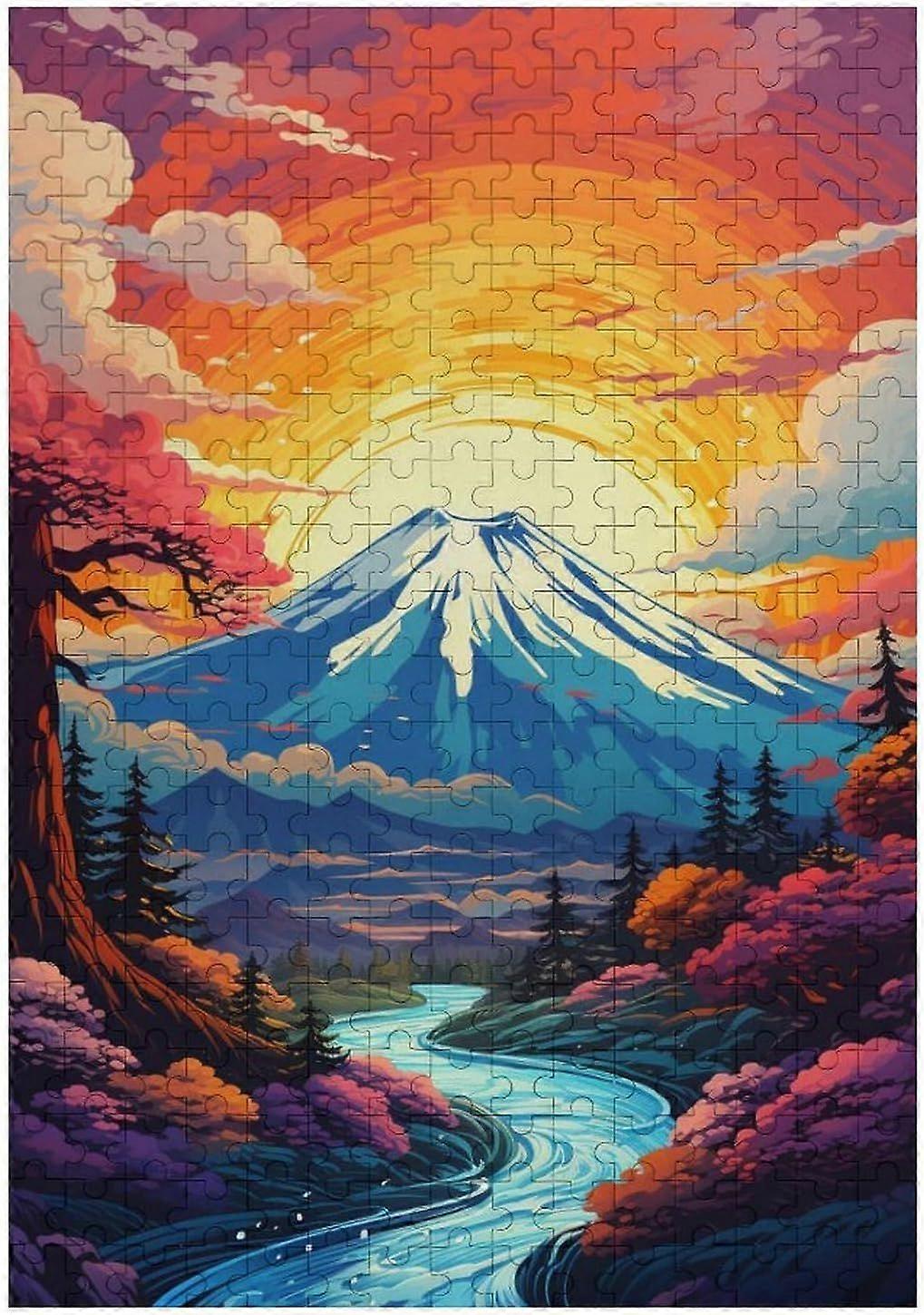 Jigsaw Colorful Psychedelic Scenery of Mount Fuji in Japan Wooden Puzzle for Family GamesFrame not includedJP-7966