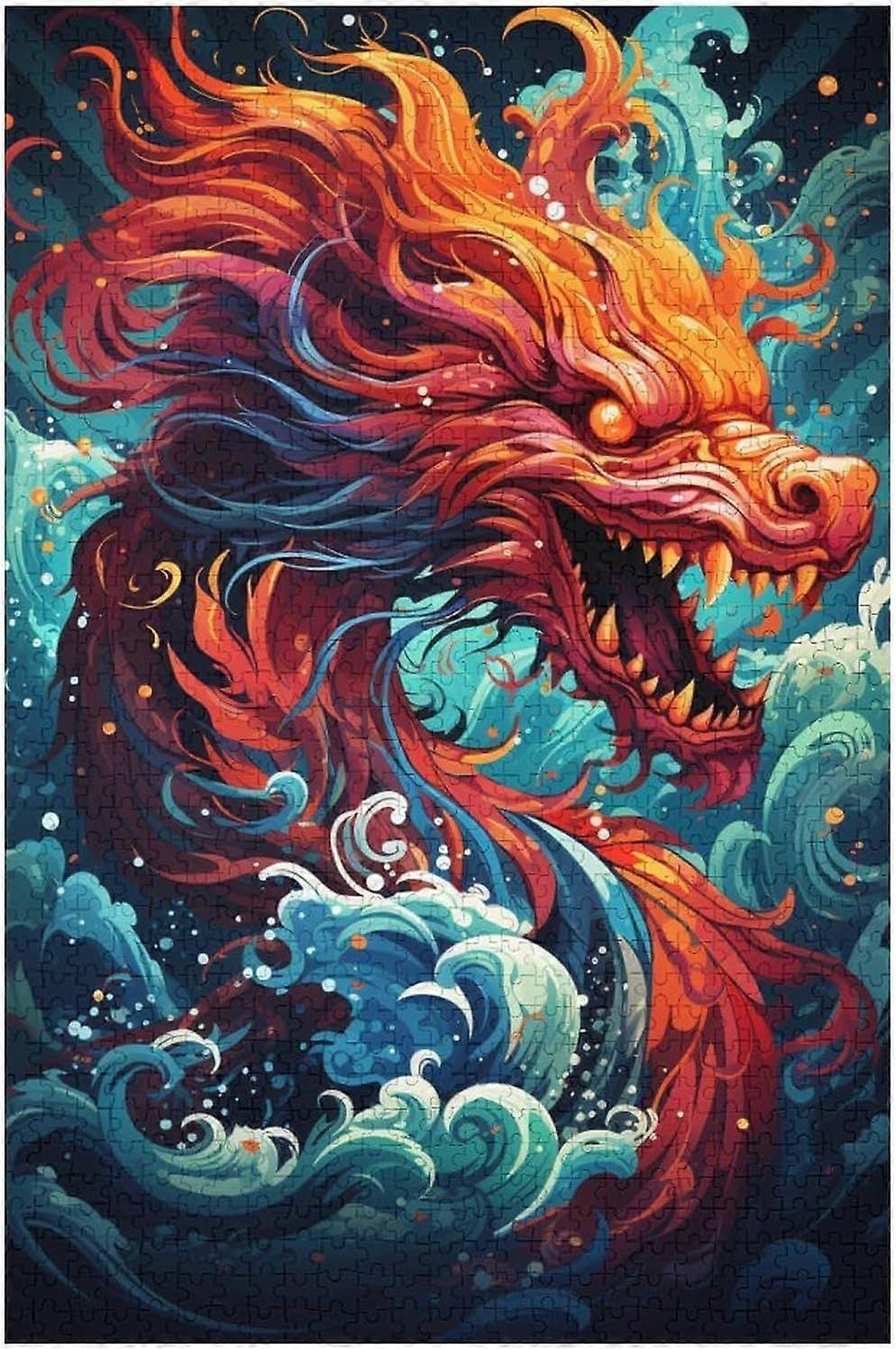 Puzzle s Colorful Psychedelic Red Dragon Jigsaw Birthday Present GiftsFrame not includedJP-7943