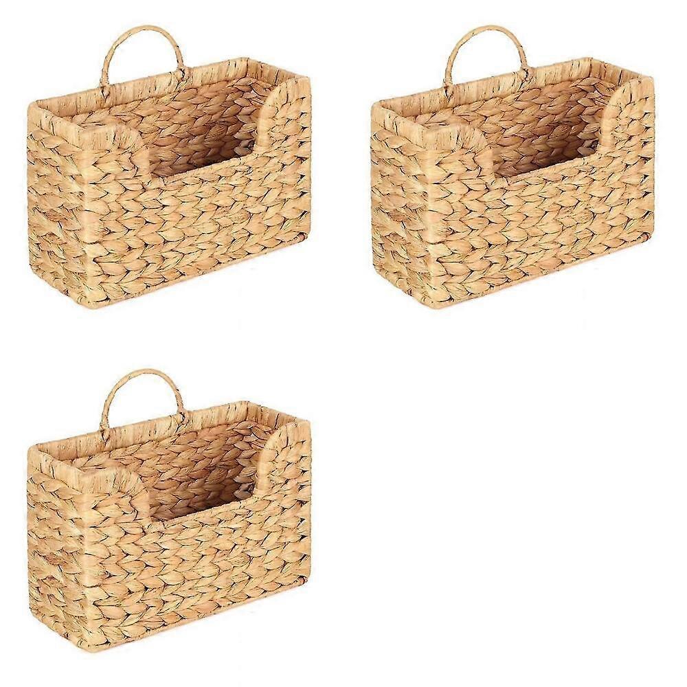 3X Handwoven Water Hyacinth Wall Magazine Holder - Hanging Organizer for Mail, Newspapers & Magazines