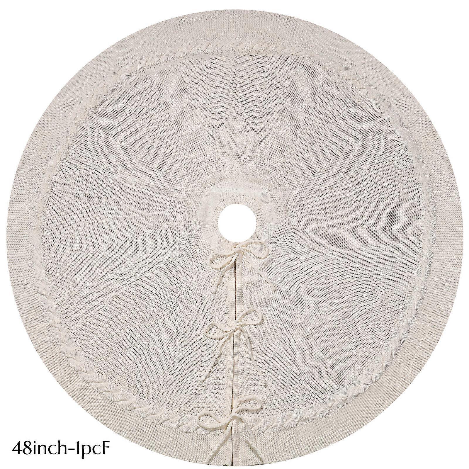 Thick Red/White Holiday Tree Skirt Christmas Vintage Design Fabric Cover Uses for Festive Tree Stand Base