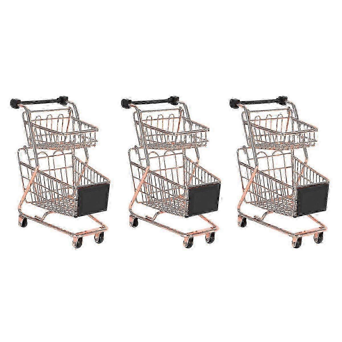 Metal Shopping Cart with Wheels 3 Storage Baskets Office Decoration Trolley
