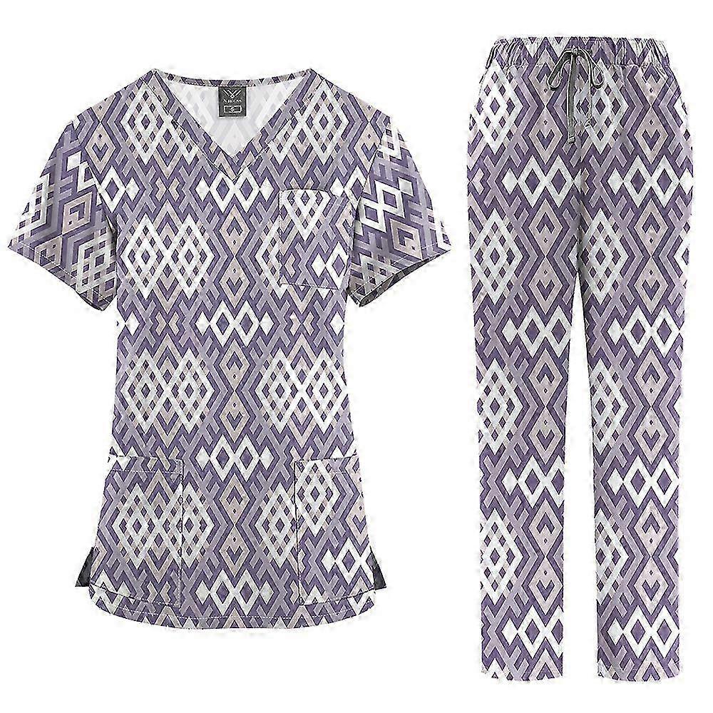 ①. All-Day Comfort and Fit - Brighten your workday with these printed scrubs sets for women! Made with breathable, stretch fabric, these women's scrubs ensure all-day comfort while offering a gentle, smooth finish. ②. Prints for a Unique Look - Break free from boring uniforms with designs that reflect your personality and bring confidence to your workday. Featuring a range of playful and unique prints, these scrubs for women allow you to express your personality and bring a pop of color to your professional attire. ③. Functional Pockets for Efficiency - Thoughtfully designed with multiple pockets to store essentials like pens, notepads, or phones, helping you stay organized during busy shifts. ④. Convenient Matching Set - This women's scrub sets includes a matching top and bottom. Choose a look that matches your mood and stand out while staying professional! making it easy to create a polished and professional look for hospitals, clinics, or any work setting. These scrub set provide the blend of style and functionality. ⑤. Durable and Easy to Care For- Crafted from wrinkle-resistant and machine-washable fabric that resists fading and wear, ensuring it stays in great condition even with frequent use.