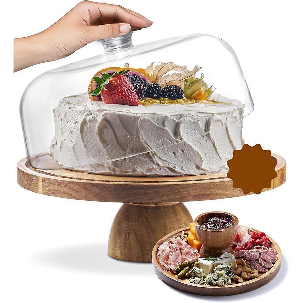 Wood Cake Stand - Holder, Holiday Hosting Essential, Fruit Tray Festive Dessert Display & Charcuterie Board Round Tray