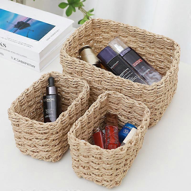 3Pcs Grass Woven Storage Baskets For Organizing And Decorating Multifunctional Picnic Fruit Basket Convenient Office Storage Box
