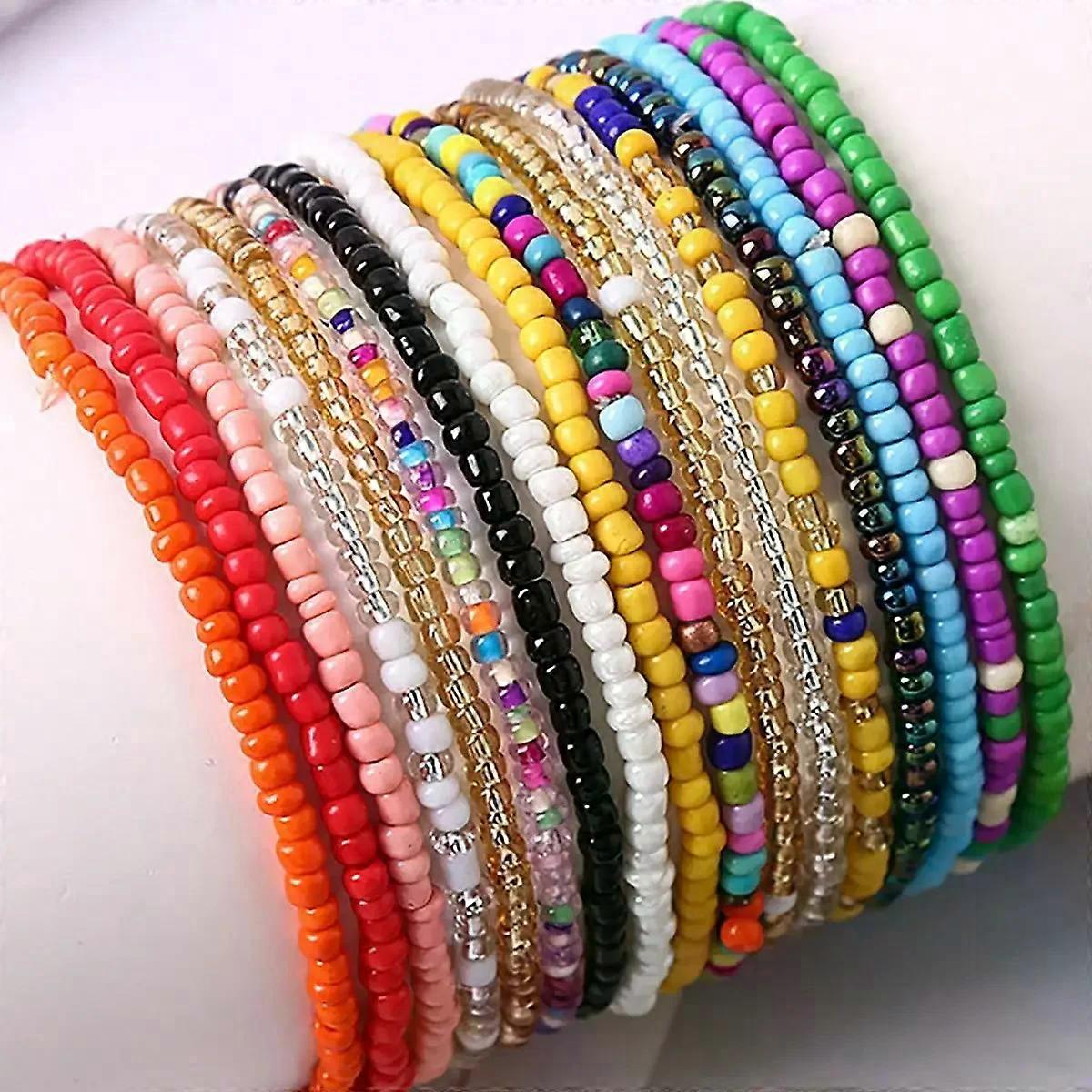 17Pcs Random Color Elastic Beaded Bracelets Set | Bohemian Stackable Stretch Boho Beach Jewelry, Colorful & Trendy