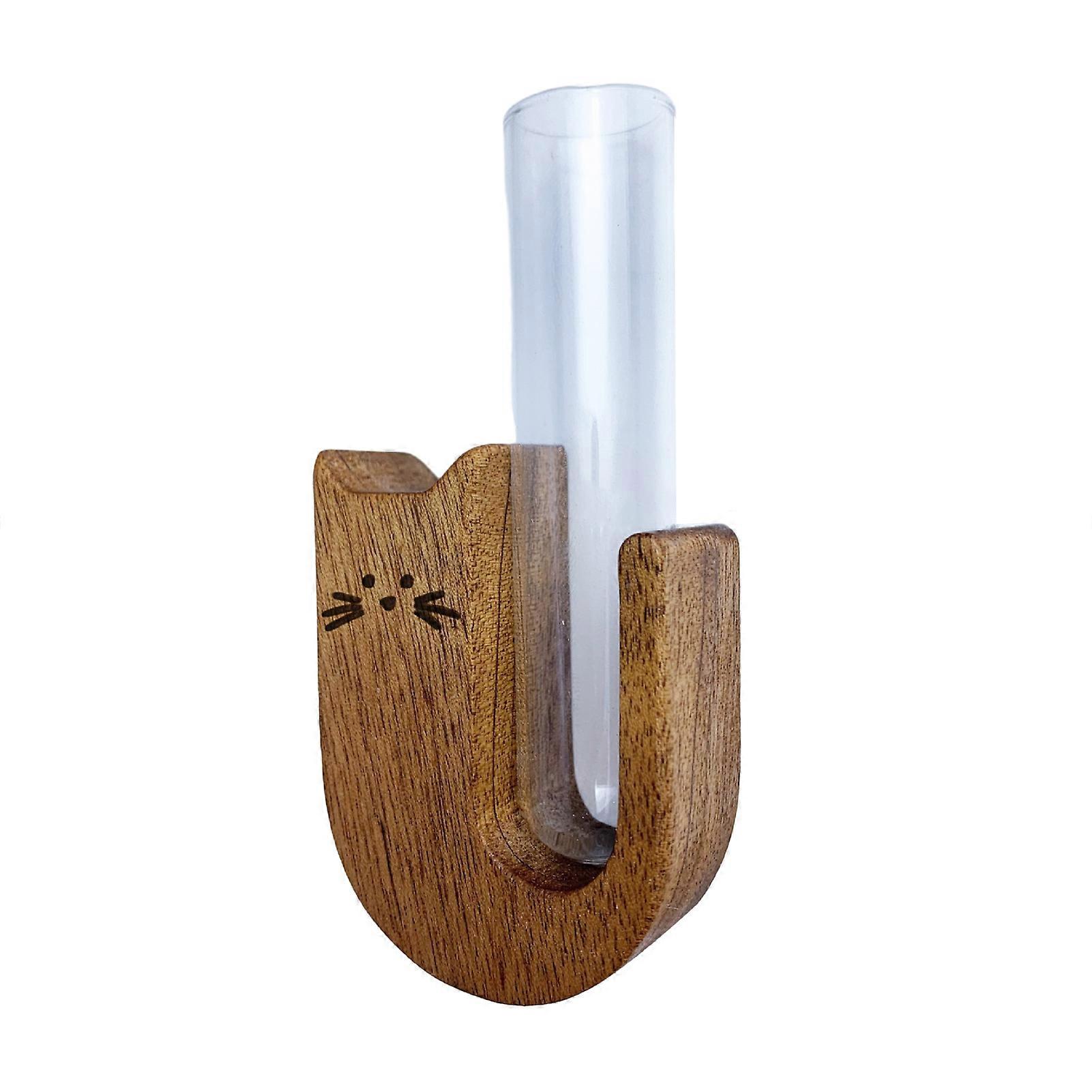 Cat Whisker Vase Magnet, Wooden Refrigerator Magnet with Glass Tube