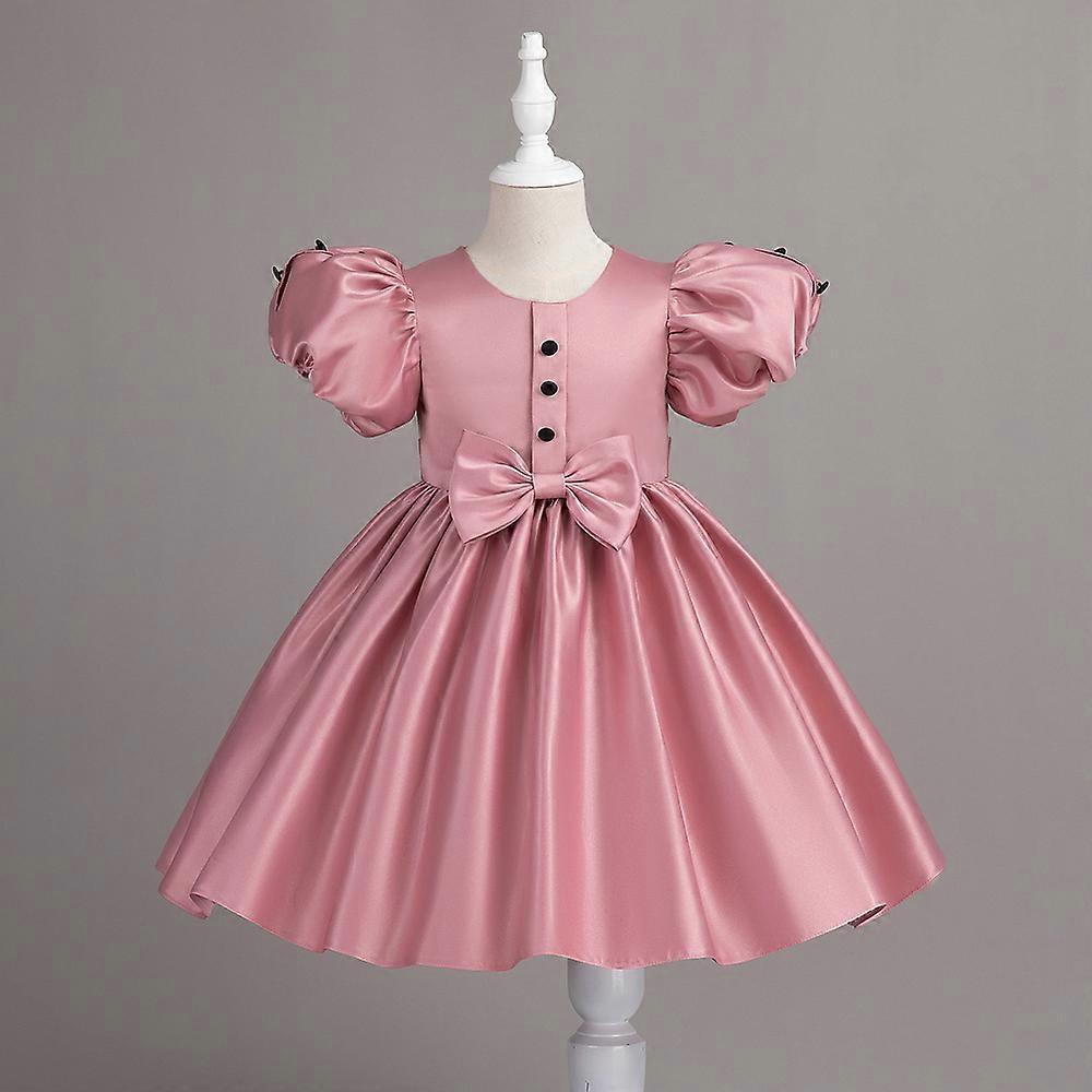 Girls Baby Sequined Mesh Puff Sleeves Birthday Party Dress Beautiful Girl Kids Children Summer Clothes Bow Satin Princess Dress