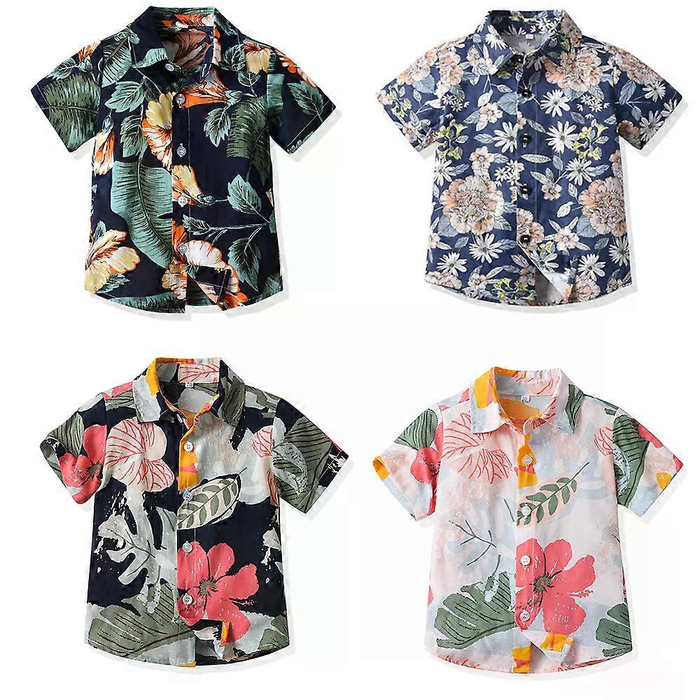 Boy Hawaiian Flower Shirt Lapel Short Sleeve Father Kid Shredded Casual Cardigan Parent Child Clothe Button Summer Beach Blouse
