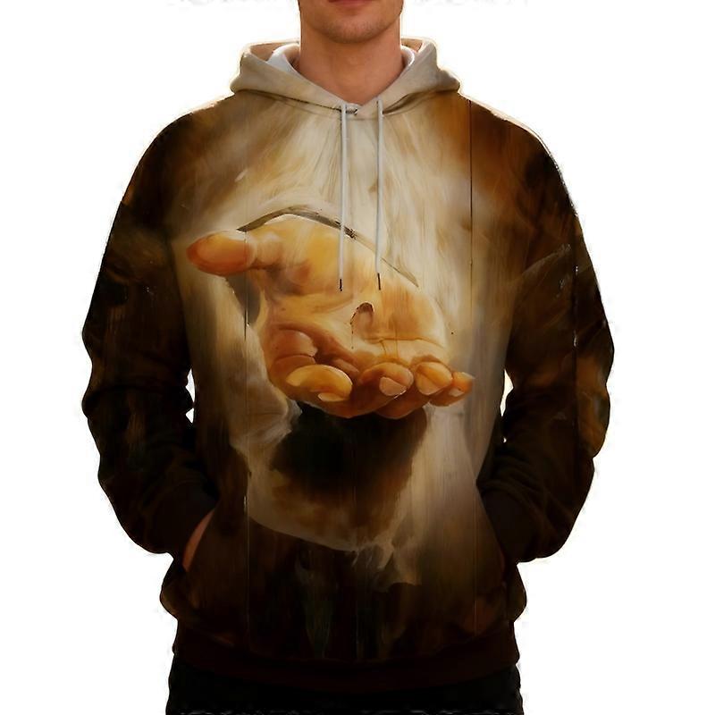 Men Hand Art Graphic Hoodie Painterly Print Pullover Distinctive Casual Top