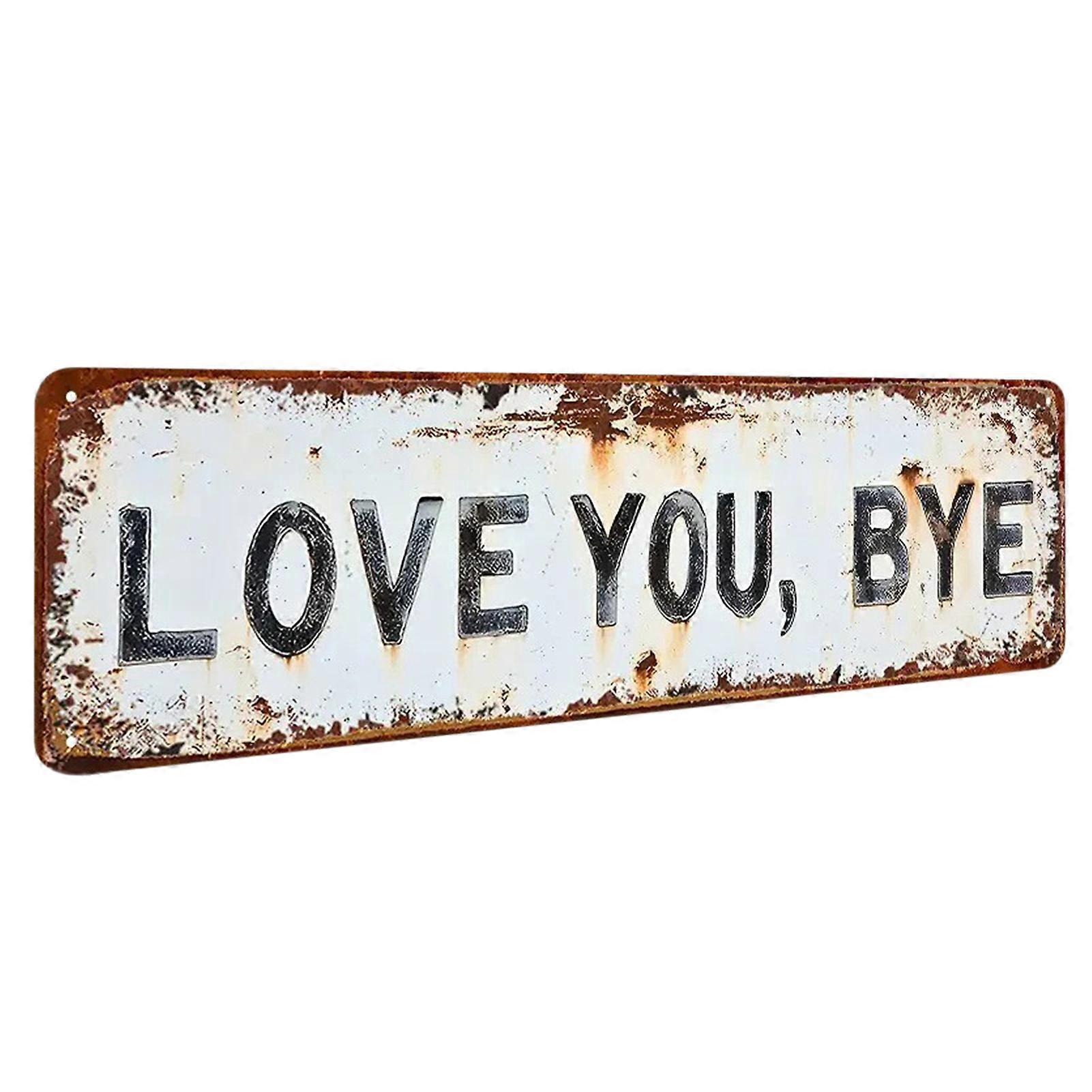 Love You, Bye - Vintage Metal Wall Sign, Love You Bye Metal Signs, Retro Greenery Style Metal Wall Plaque Decor