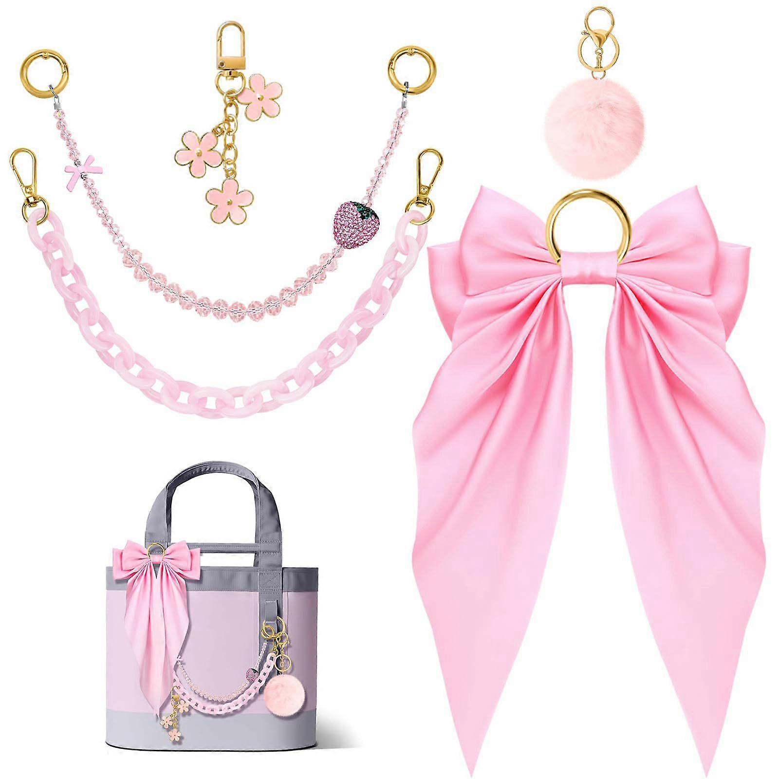 Pack of 5 Multifunctional DIY Charm Accessories with Elegant Bowknot Design Soft Plush Ball Pearls Strand Decors for Keys Bags Enhancement Multicolor