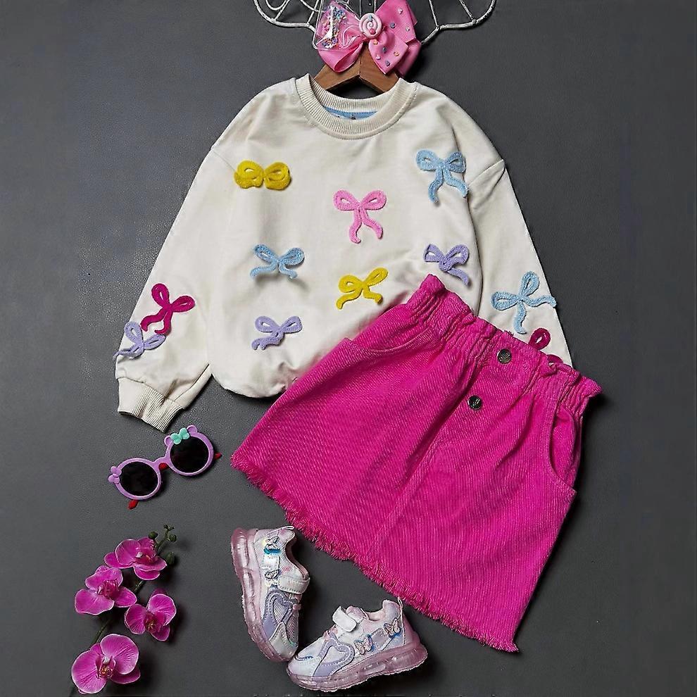 Round Neck Long Sleeve Short Skirt Two-piece Set Children Kilt Baby Tops European and American Style Kids Kit Trendy Girl Suit