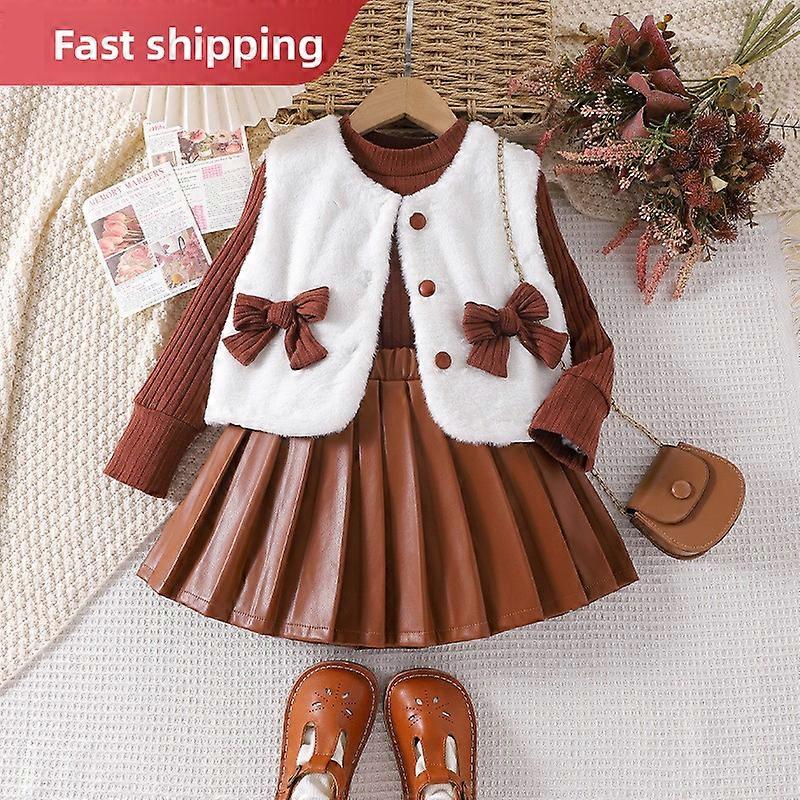Three-piece Set KIDSPULeather Skirt for Kids Skirts for GirlsParty Skirts ForToddlersSkirts Fashion Children's Clothes for Girls