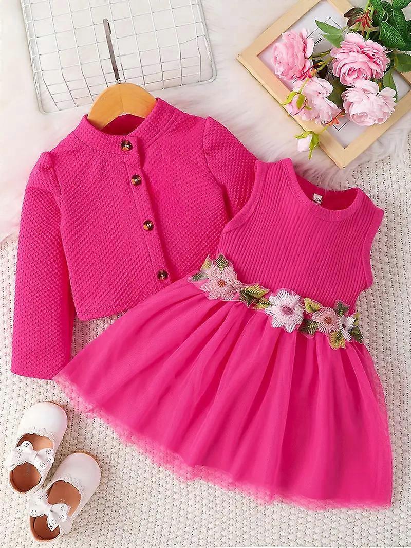 Aesthetic Style Children Suit Mesh Skirt Solid Color Checked Jacket Girl Dress Two-piece Set Little Fragrance Kid Dress Autumn