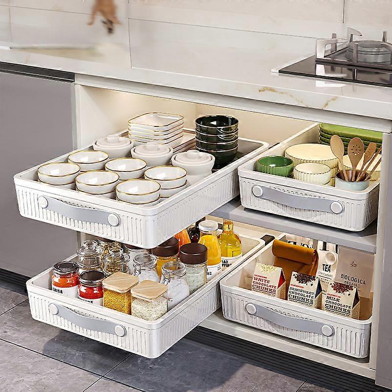 Cabinet Organizer With Handle Slide Out Drawer For Kitchen Cabinet Shelf Storage Tray Spice Jars Storage Rack Accessories