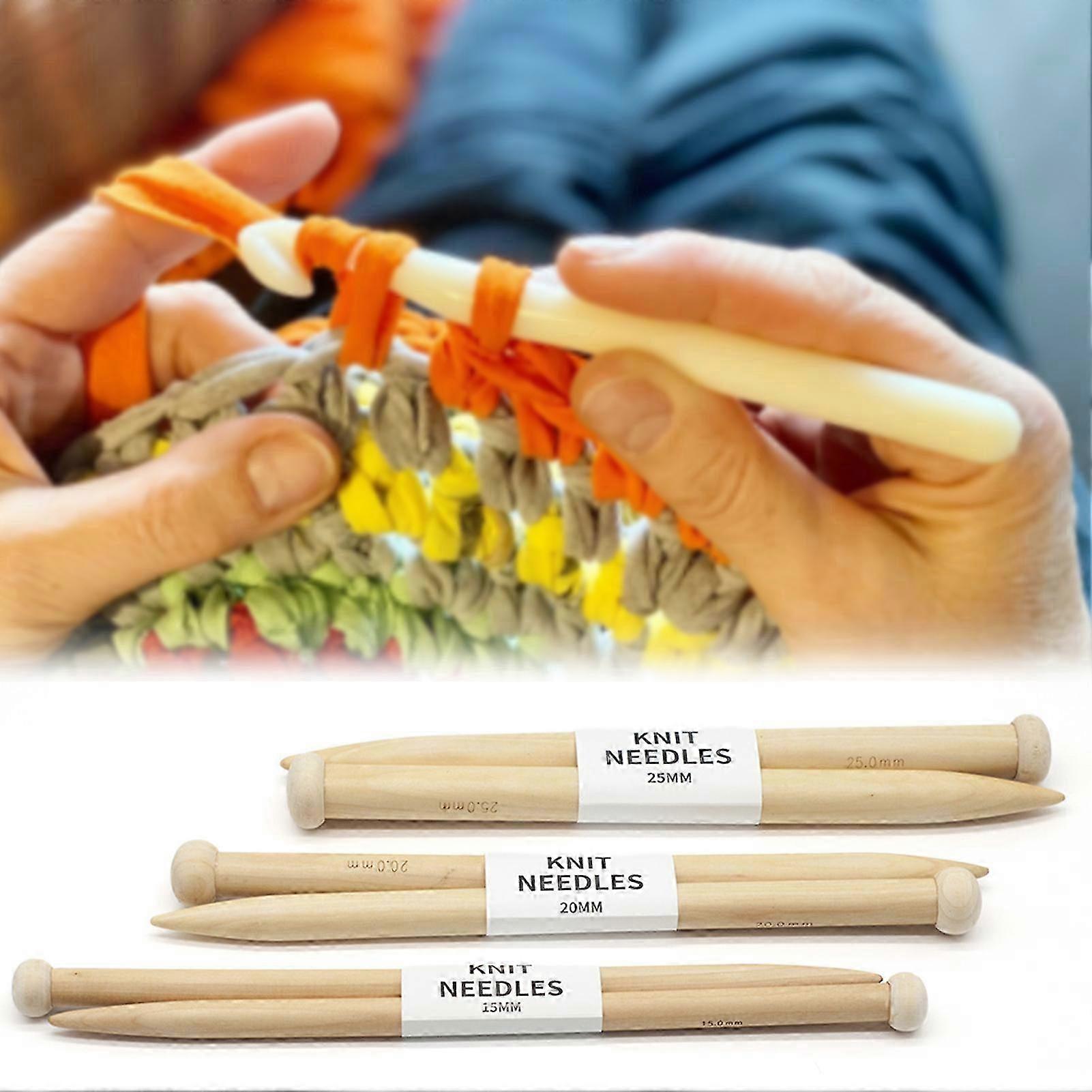 Improved Knitting Tools: 15/20/25mm Thick Wood Needles for Chunky Yarn & Icelandic Wool, DIY Knitting for Blankets & Sweaters
