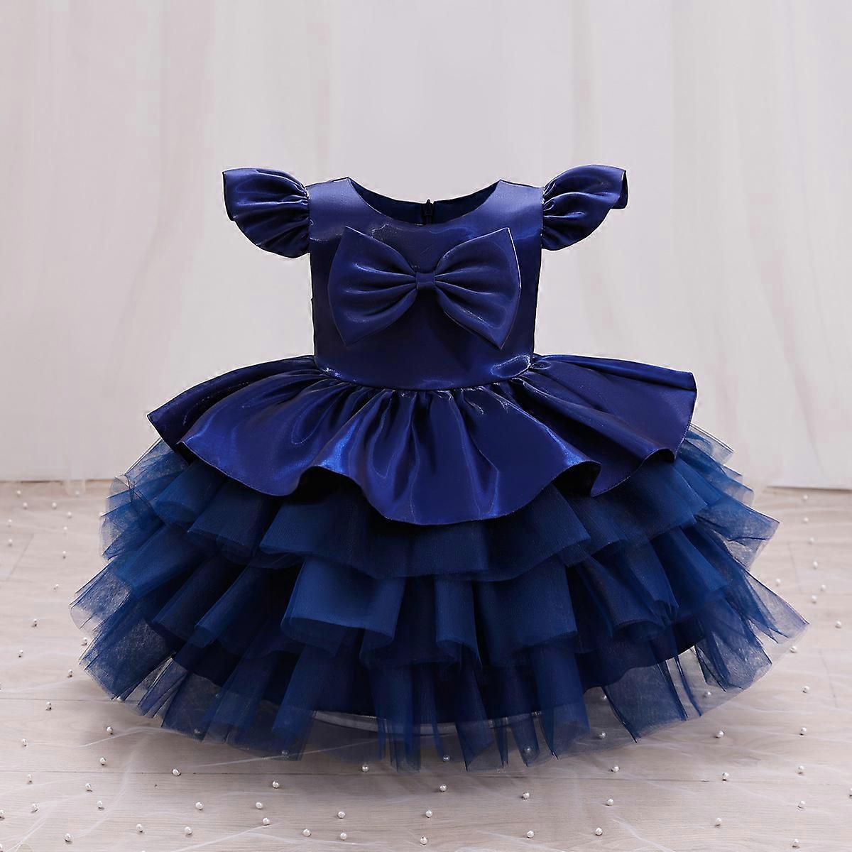 Kids Large Bow Detailed Outfit Girl Puff Sleeve Party Dress Satin Bodice Skirt Children Multi Tiered Tulle Special Event Elegant