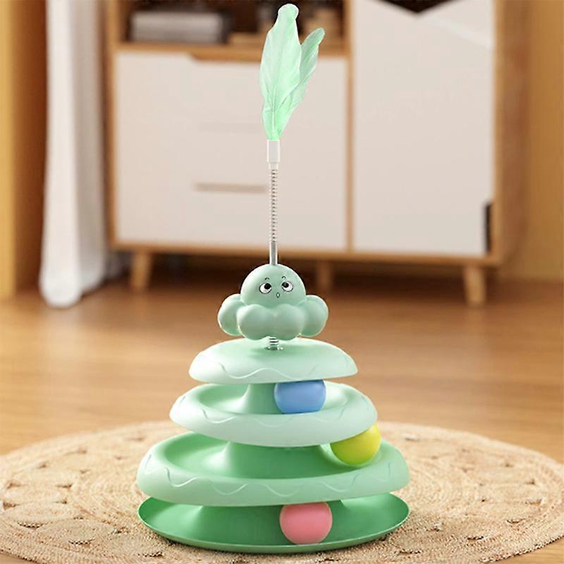 Colorful Balls Cat Toy Hollow Tracks Detachable Portable Playground for Cats Interactive Cat Stick Turntable for Boredom Relief
