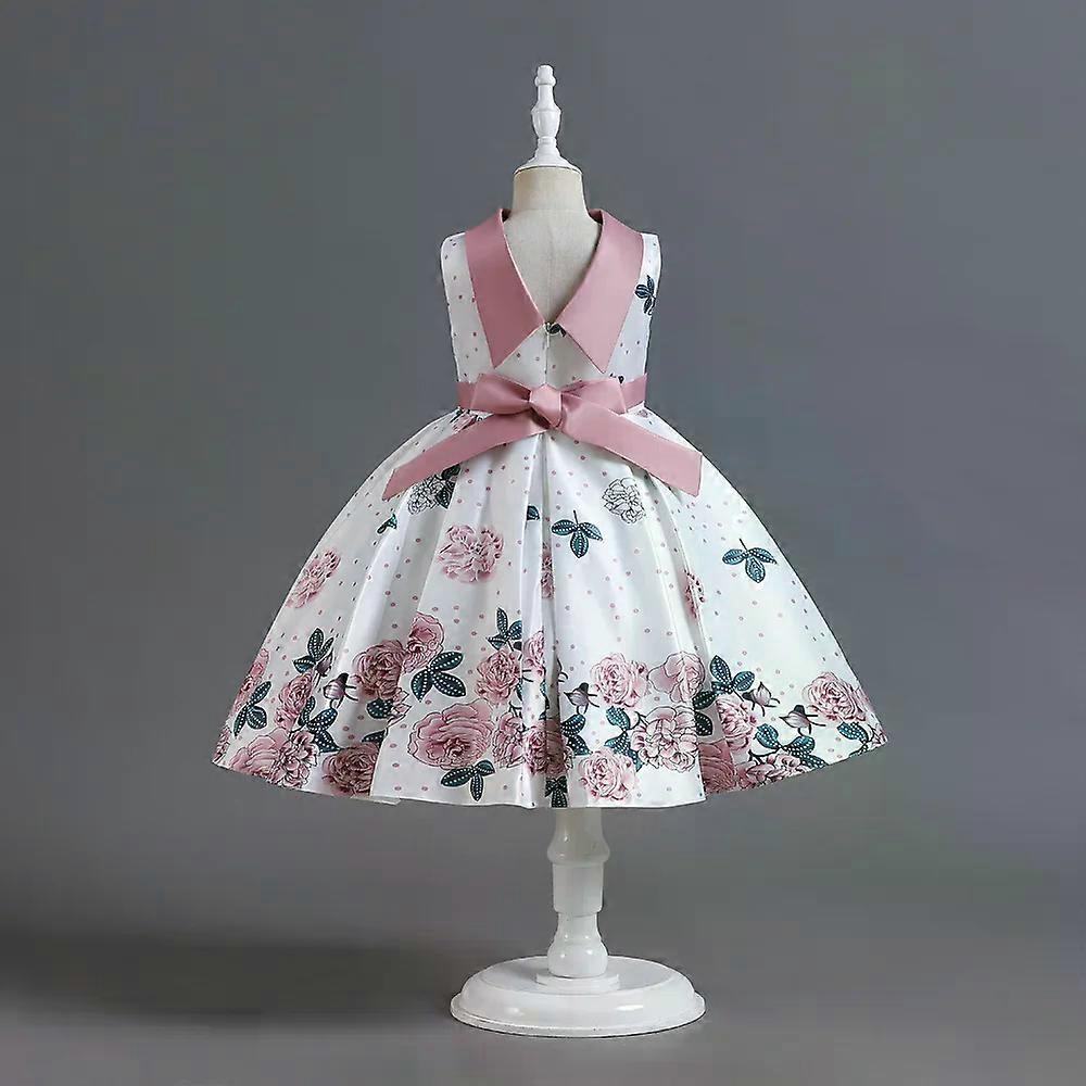 Children Contrasting Collar Waistband Pleated A - Line Skirt Kids Sleeveless Polka Dot Floral Print Dress Girl Party Gown Outfit
