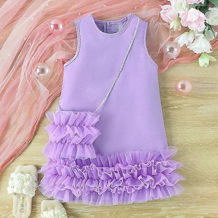 Little Girl A-Line Tulze Skirt with Cute Bag Princess Dress Children Toddler Party Dress Baby Dress New Kids Girl Dress