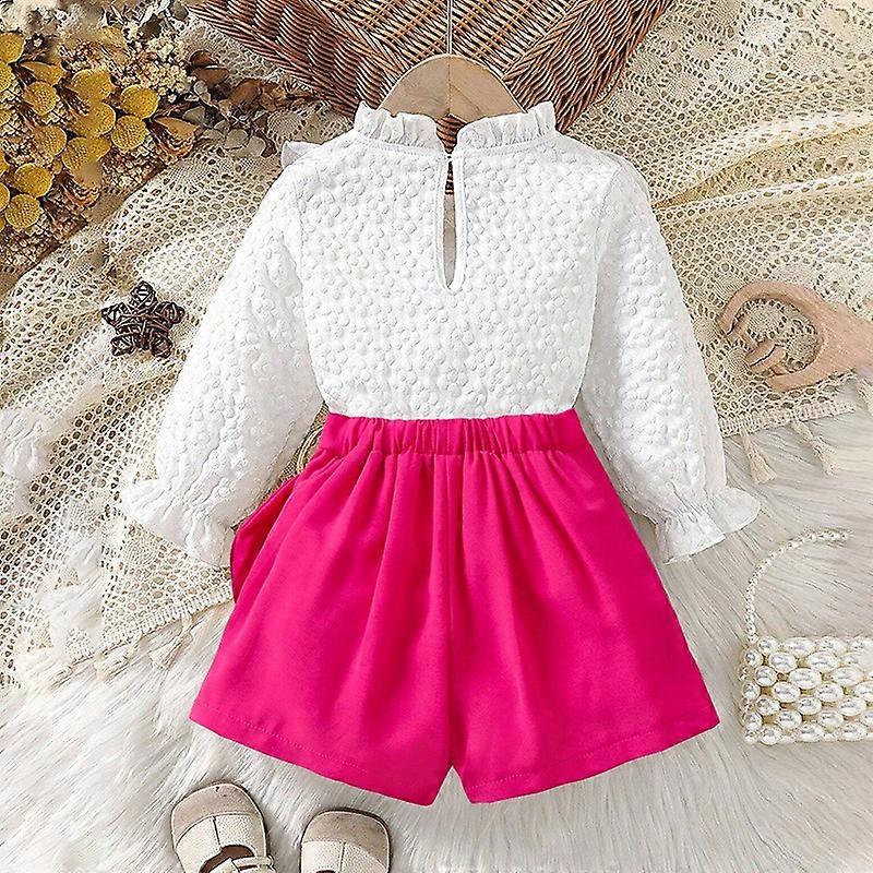 Lace Collar Long Sleeves with Bow Hakama Two-piece Set Children Kit Baby White Tops Toddler Children Kilt Fashion Girls' Suit