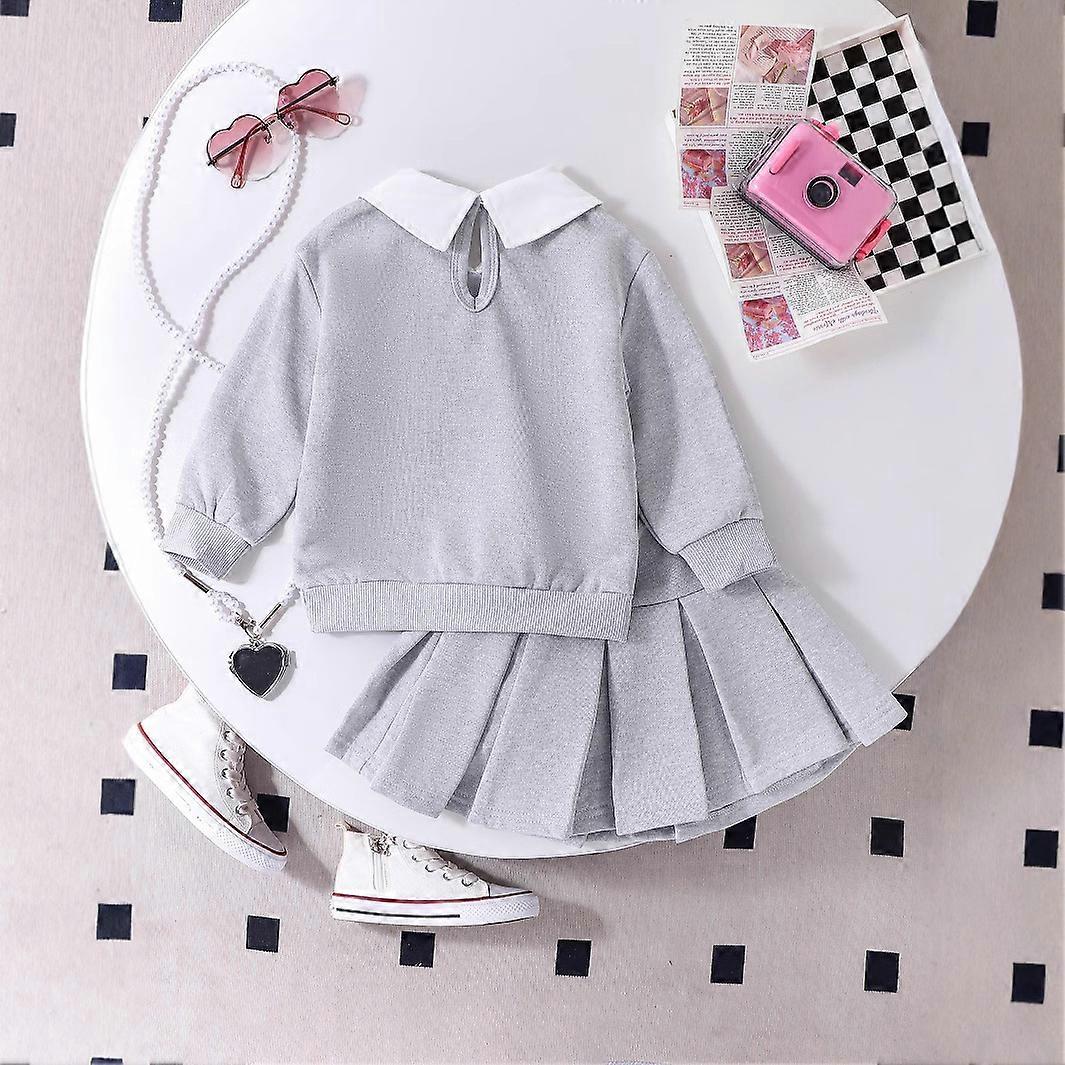 Black Alphanumeric Print Gray Long Sleeve Sweatshirt Gray Pleated Skirt Kids Two-piece Set New Fashion Children Kit Girls' Suit