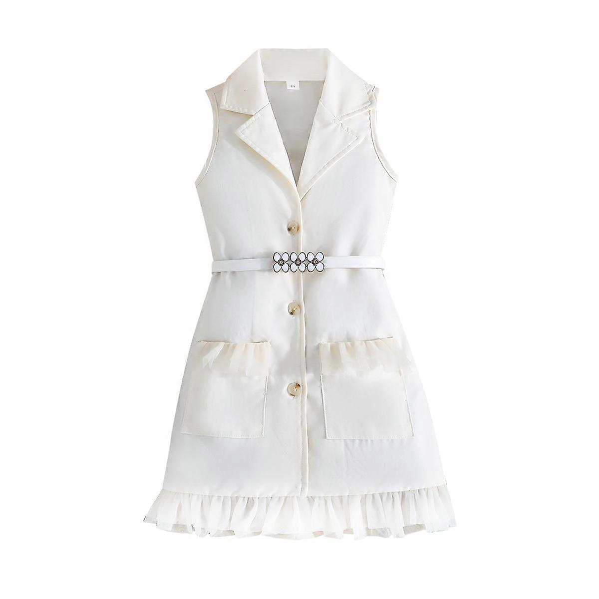 Kids Temperament Elegant Skirt Summer Girls Dress Plain Sleeveless Lapel Suit Dress Tulle Skirt Fashionable Children Casual Wear