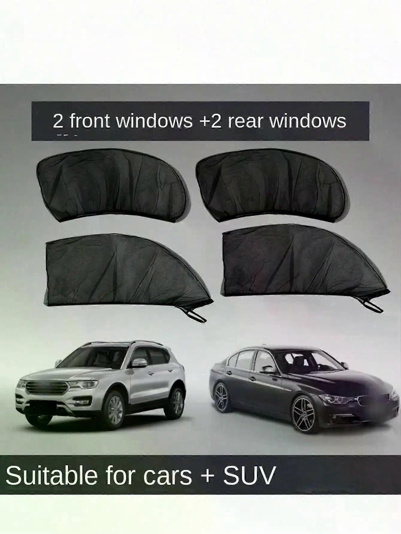 4-Piece Breathable Mesh Car Side Window Shade UV & Insect Resistant Universal Mosquito Net for Car Windows