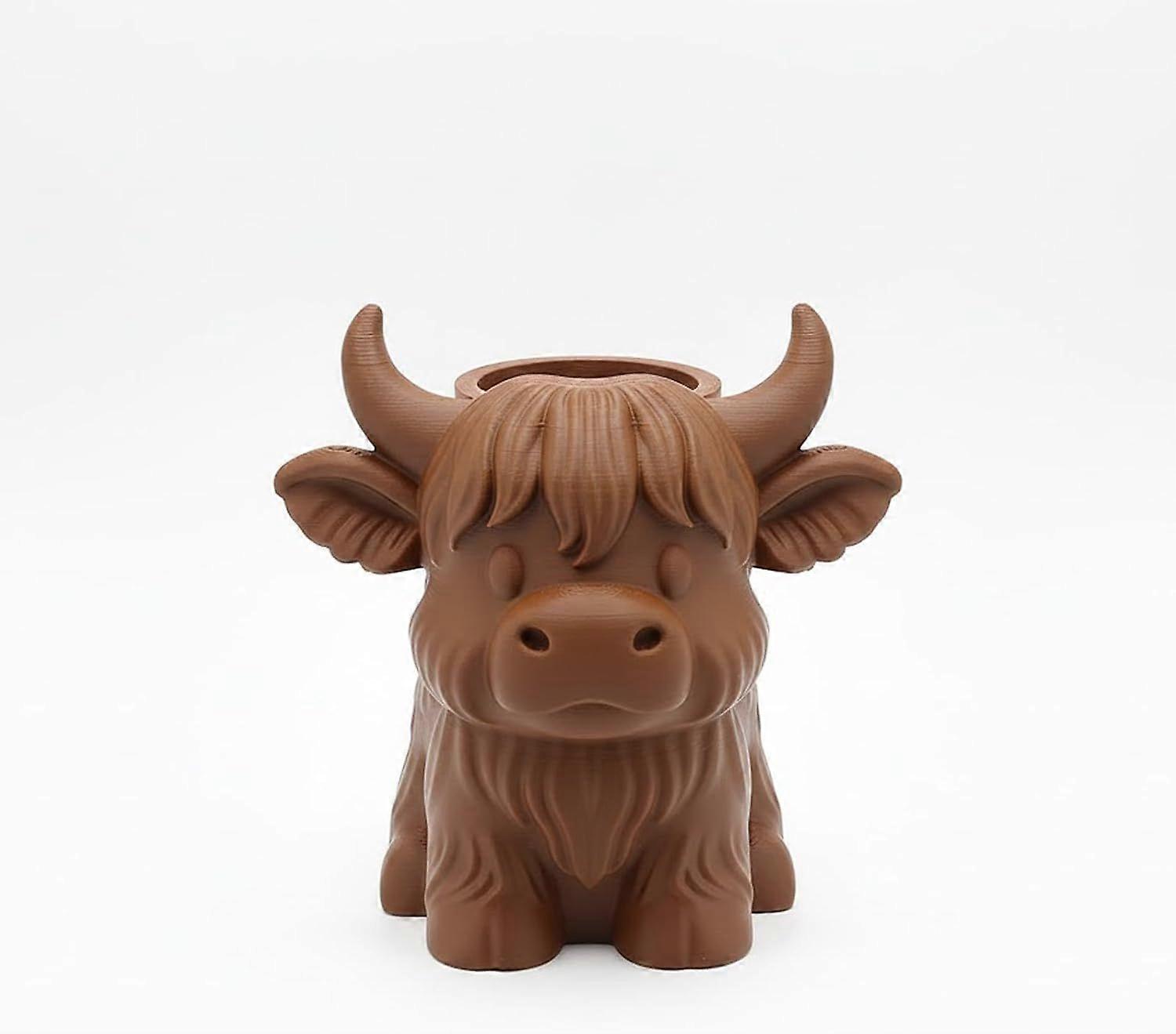 Highland Cow Storage Cup Adorable Cow-Shaped Desktop Pencil Holder And Makeup Brush Organizer Bohemian Farmhouse-Style Storage Perfect Gift For Cow En