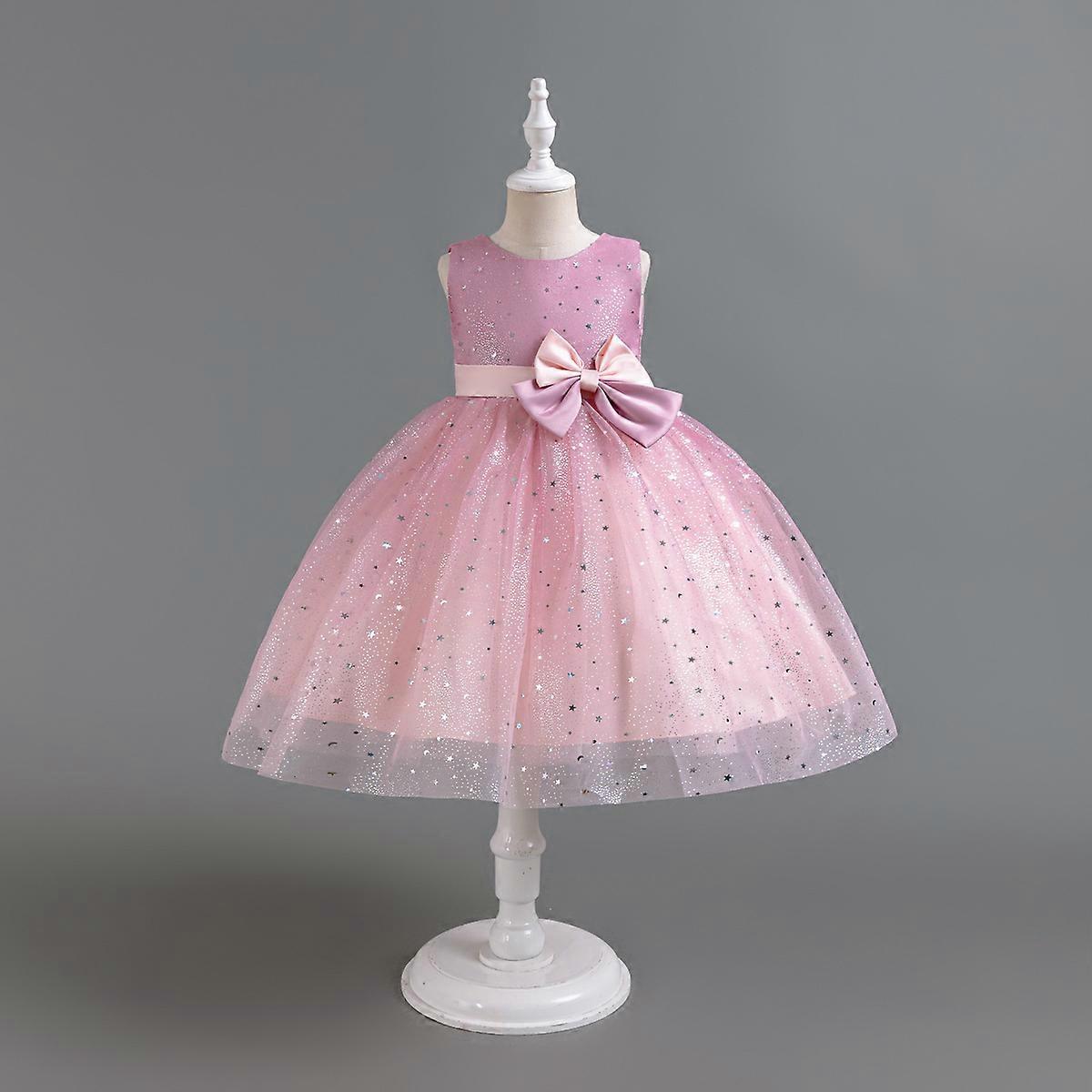 Girl Ombre Gradient Tulle Skirt Dual Tone Bow Detail Kid Sleeveless Sequin Embellished Dress Princess Style Party Children Gown