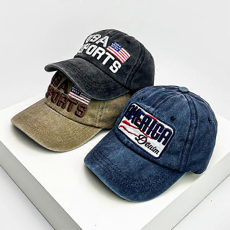 American Flag Letter Embroidery Distress Baseball Hats New Unisex Breathable Retro Sunshade Peaked Caps Street Versatile Fashion