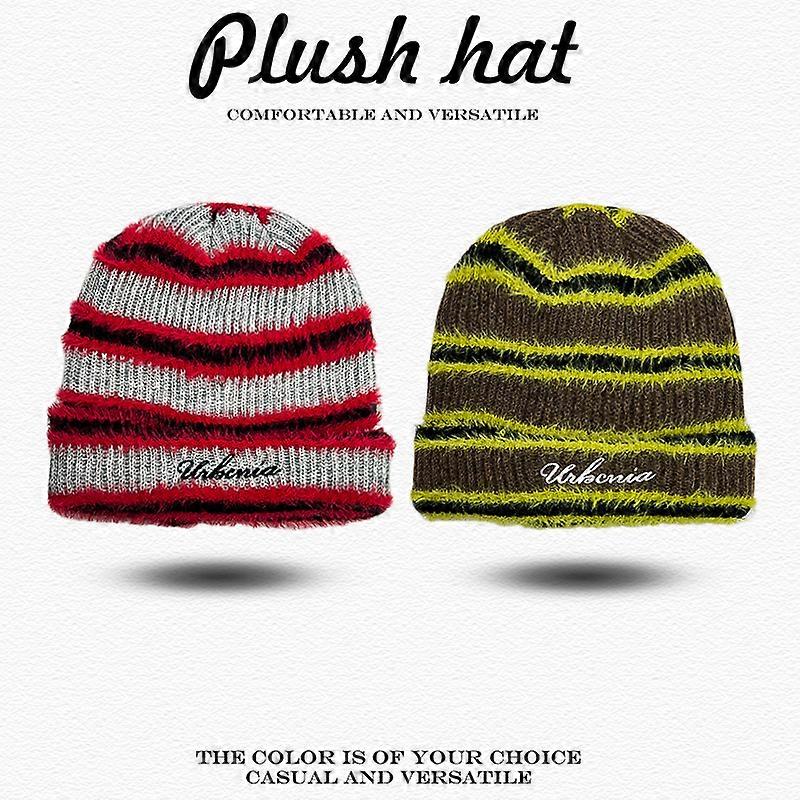 Warm Color Block Fashion Casual Beanies Versatile Elasticity ins New Men Women Korean Stripes Embroidered Letters Knitted Hats
