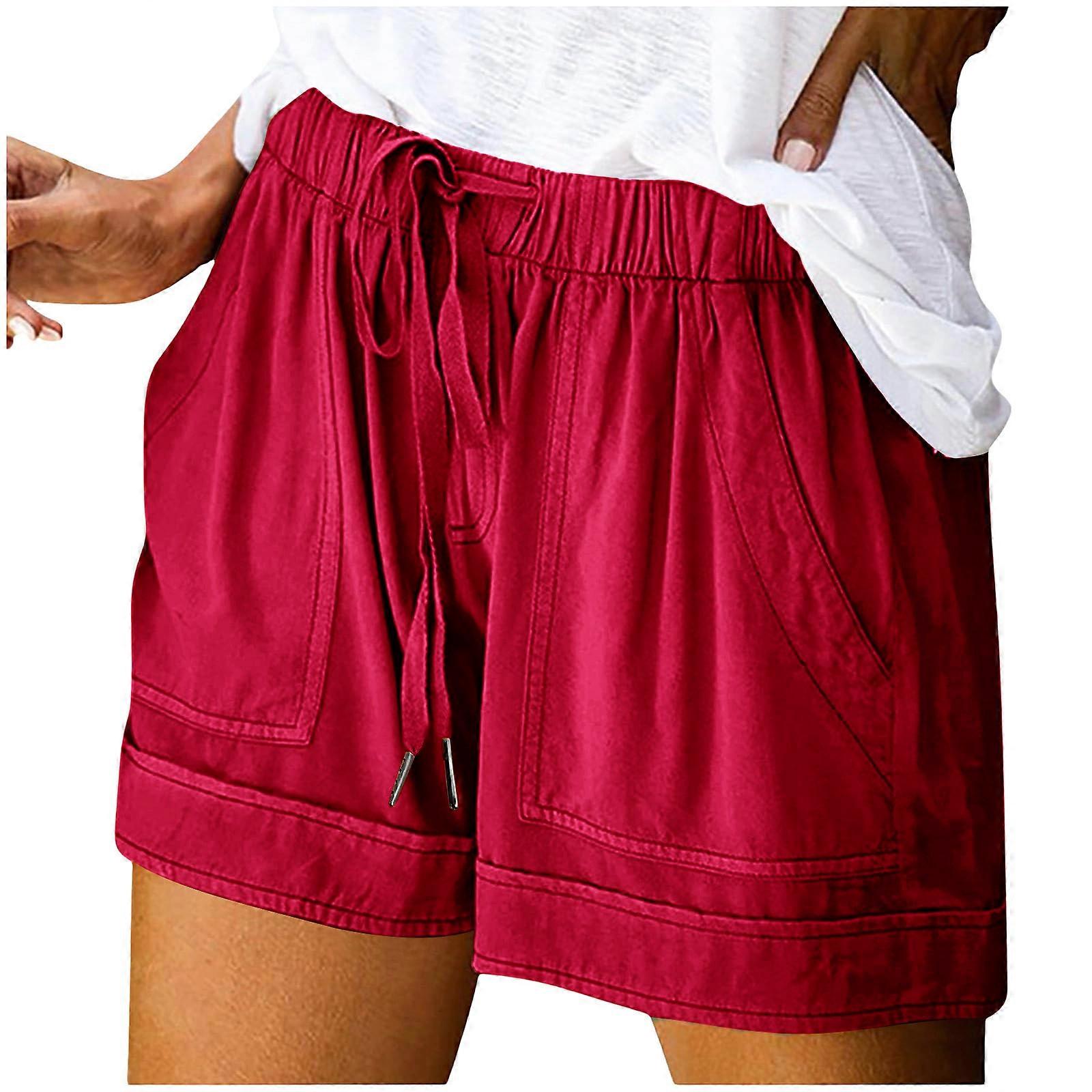 Womens Elastic Waist Drawstring Shorts Summer Lightweight Beach Shorts Comfy Casual Short Pants with Pockets Burgundy XL