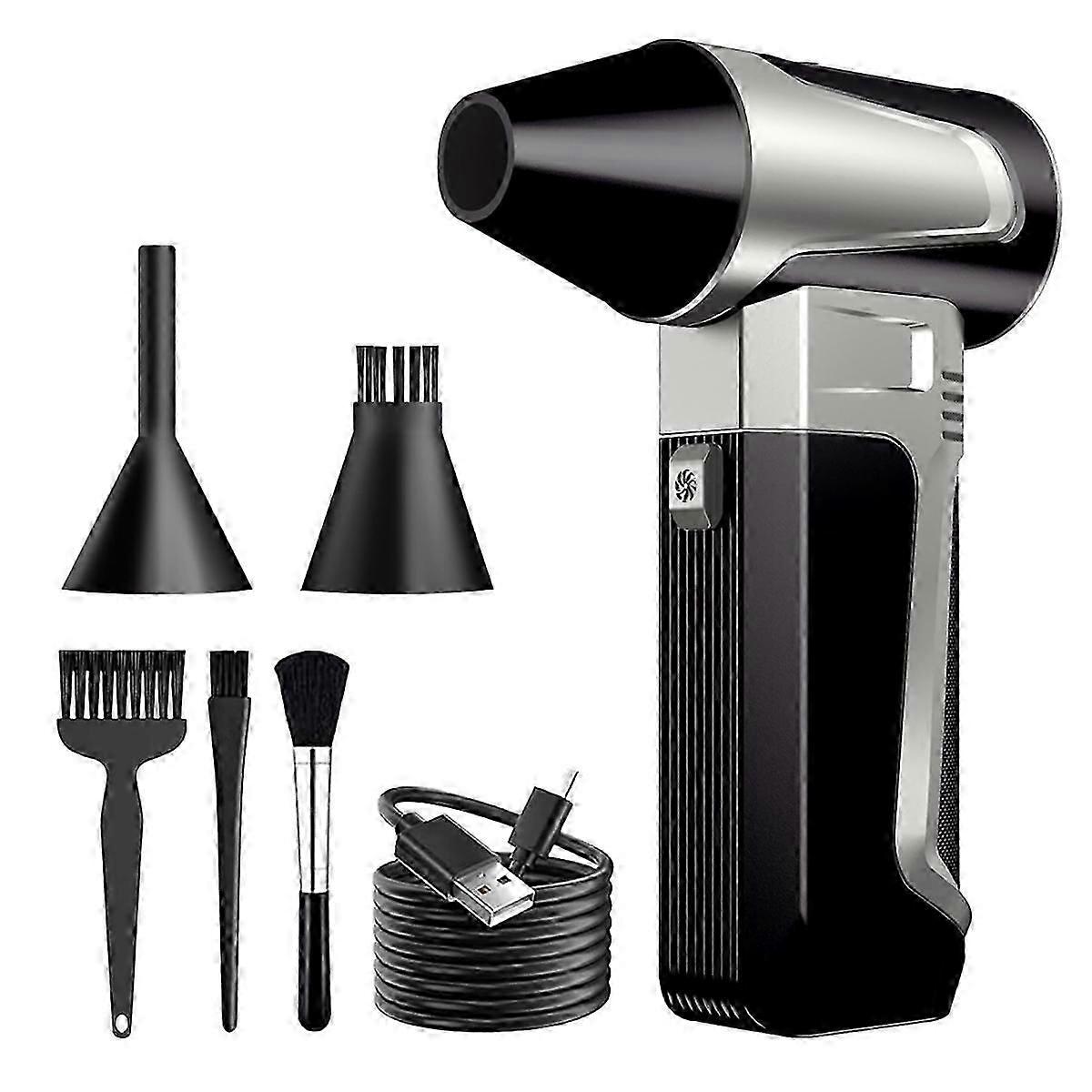Adjustable Power for Versatile Cleaning: Featuring a high-speed motor with a maximum of 130,000 RPM, this electric air duster offers three adjustable speeds. Tailor its powerful blast to suit a variety of cleaning tasks, from delicate electronics to robust outdoor applications. Compact and Portable Design: Equipped with a self-contained battery, this air duster weighs just 0.51 pounds and charges fully in 2.5 hours via a Type-C cable. Its compact size ensures it is easy to carry and store, making it perfect for on-the-go use. Eco-Friendly and Cost-Effective: Avoid the recurring expense and environmental impact of canned air. This rechargeable duster comes with a high-capacity battery, three nozzles, and two brushes, making it a sustainable choice for cleaning or during travel. Multipurpose Cleaning Tool: Ideal for both indoor and outdoor use, this air duster effectively removes dust from electronics, vehicles, and furniture. It can also be used for inflating air cushions, blowing snow or leaves, and fanning flames during outdoor picnics. Color: black Material: ABS Package Contents: 1 x Dust Blower 1 Set of Accessories 1 x Charging Cable Only the above package content, other products are not included. Note: Light reflection and different displays may cause the color of the item in the picture a little different from the real thing. The measurement allowed error is +/- 1-3cm.
