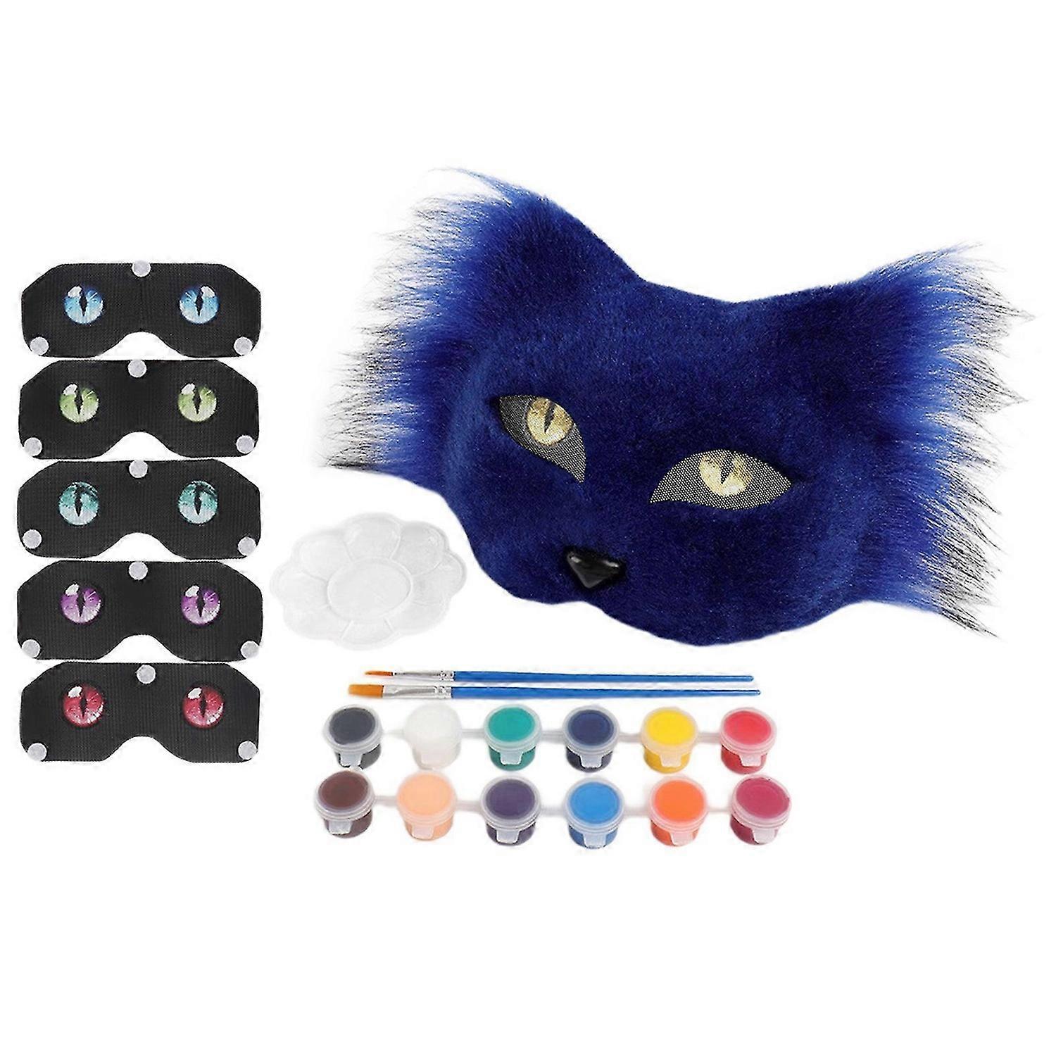 Features: Elevating your Halloween look with this half face mask, crafted from lightweight yet practical furry plush and plastic for comfort at costume parties and themed event.<br> Breathable, ergonomic design that contoured to face curves, unique painting and decorating accessory, the plastic construction ensures comfortable wear while maintaining bold styles through intricate patterns.<br> Ideal for party enthusiasts, cosplay performers, and student seeking standout accessories for school carnivals or dramatic productions.<br> Perfectly complements masquerade balls, Halloween trick or treating, gatherings, or as edgy photo props props for content creators.<br> Easy to pair with various clothing, increasing mystery and fun.<br> Specifications: Component: Furry plush fabric,plastic<br> Optional Color: As picture shown<br> Size:approx. As picture shown<br> Quantity: 1set<br> Package Includes: 1pc Cosplay Half Face Cat Mask<br> 1pc Cosplay Tail<br> 5pcs Cosplay Eye Modes<br> 1pc 12 colors Paints<br> 1pc Tray<br> 2pcs Painting Brush<br> note: Please allow 1-3cm error due to manual measurement. please sure you not mind before you bid.<br> Due to difference between different monitors, the picture may not reflect the actual color.