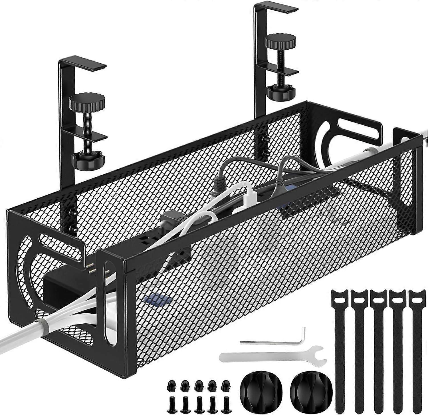 Under Desk Cable Management Tray No Drill, Metal Mesh Cable Management Under Desk with Clamp Mount, Wire Management Tray, Cord Organizer for Home