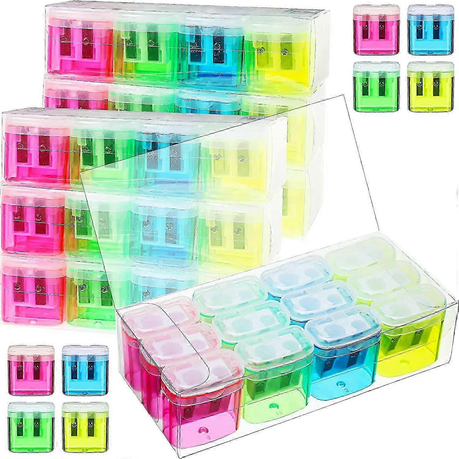 96 Pieces Pencil Sharpeners for Kids Colored Manual Double Hole with Lid Hand Held Edition 0112